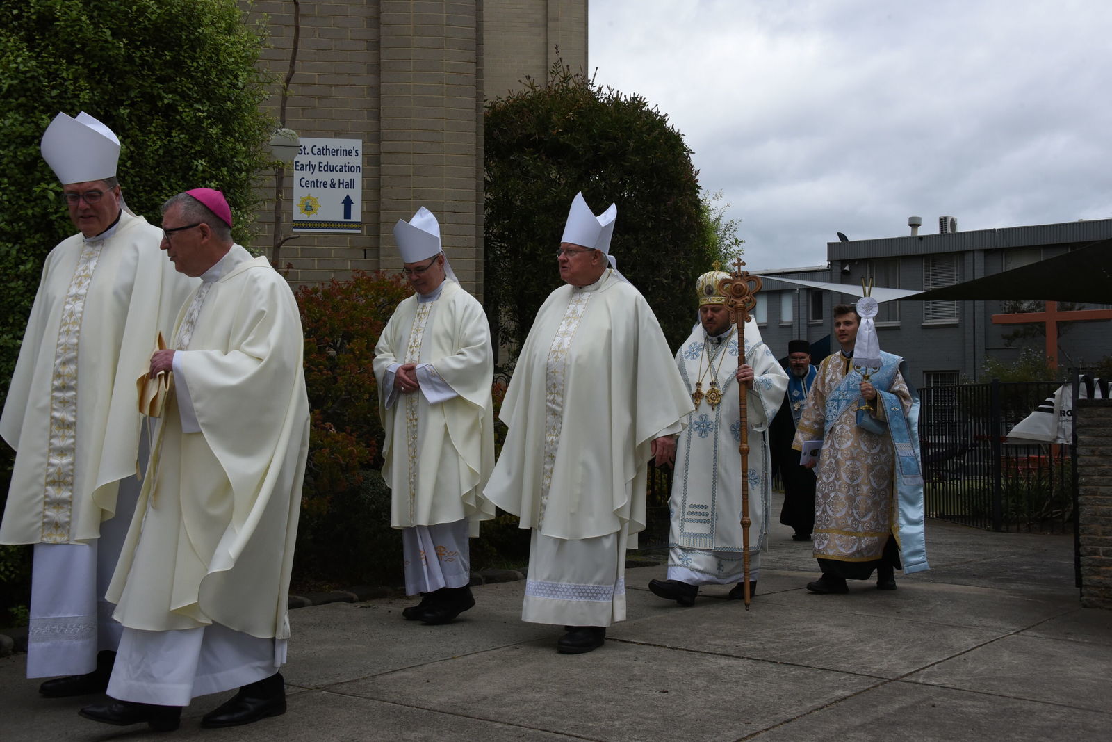 Архиєрейську Божественну літургію очолив владика Микола кардинал Бичок, єпарх Мельбурнський. Разом із ним співслужили численні представники Римо-Католицької Церкви в Австралії, зокрема Архиєпископ Чарльз Бальво, Апостольський Нунцій в Австралії, владика Пітер Коменсолі, Архиєпископ Мельбурнської архидієцезії, владика Майкл Маккена, єпископ дієцезії Бетхерст, владика Грег Беннет, єпископ дієцезії Сейлу, владика Пол Берд, єпископ дієцезії Баларату, владика-емерит Теренс Кертін, о. Кріс Де Сюза, генеральний секретар Австралійської конференції католицьких єпископів, та о. Джон Ходжсон, протоігумен Згромадження редемптористів провінції Океанія. Про це повідомляє пресслужба Мельбурнської єпархії Святих апостолів Петра і Павла.