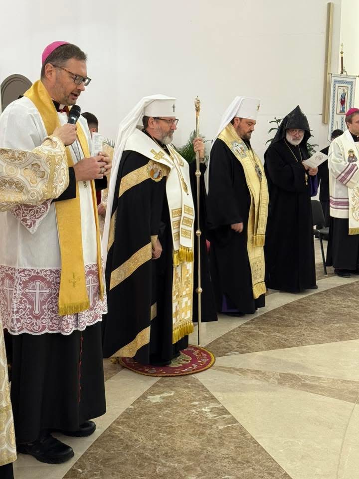 Спільну молитву очолив Отець і Глава Української Греко-Католицької Церкви Блаженніший Святослав у співслужінні з Апостольським нунцієм в Україні архиєпископом Вісвальдасом Кульбокасом, єпископом-помічником Київської архиєпархії владикою Андрієм Хім’яком, а також духовенством і представниками католицьких, православних та протестантських Церков. Про це повідомляє Департамент інформації УГКЦ.