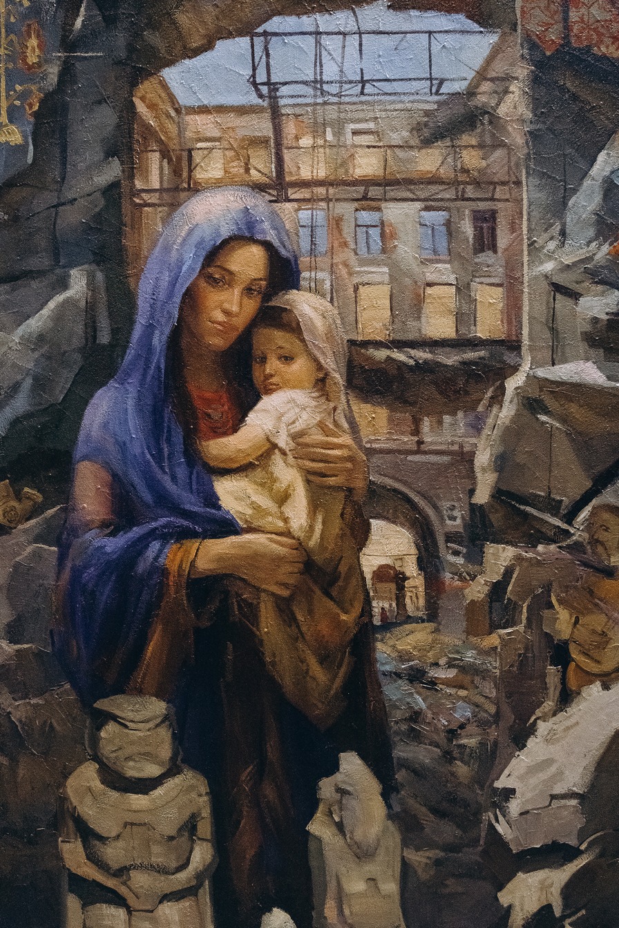 Центральним образом виставки стала «Українська Мадонна» — символ материнської любові, сили духу та молитви українського народу. Через мистецтво автори розповідають про трагедію Голодомору, стійкість українських міст та незламну віру у перемогу.