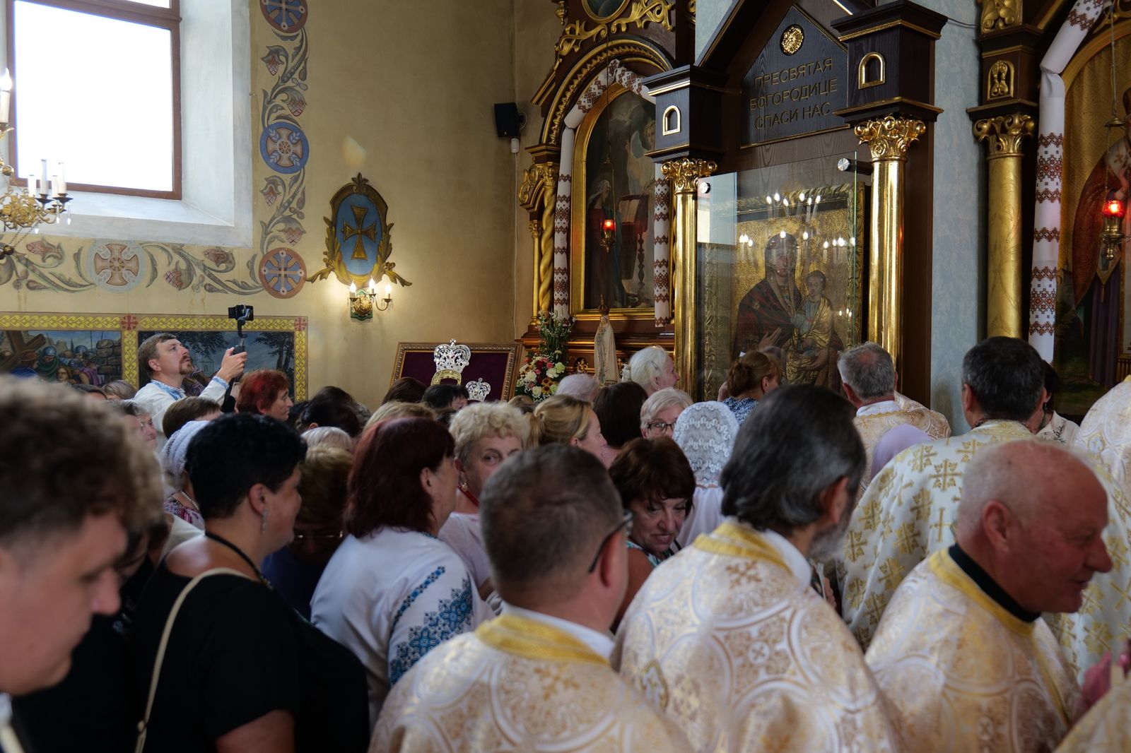 Відтак архиєреї урочисто відкрили Дроговизьку чудотворну ікону Божої Матері, яка відтепер буде виставлена у храмі для загального почитання, і всі присутні у храмі спільно заспівали молитву «Під твою милість».