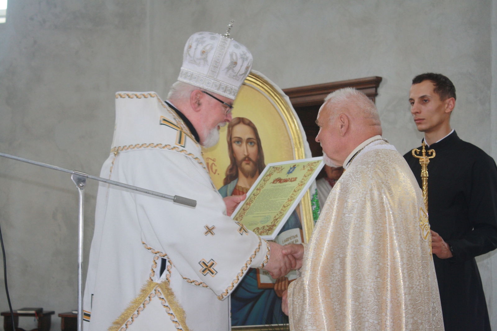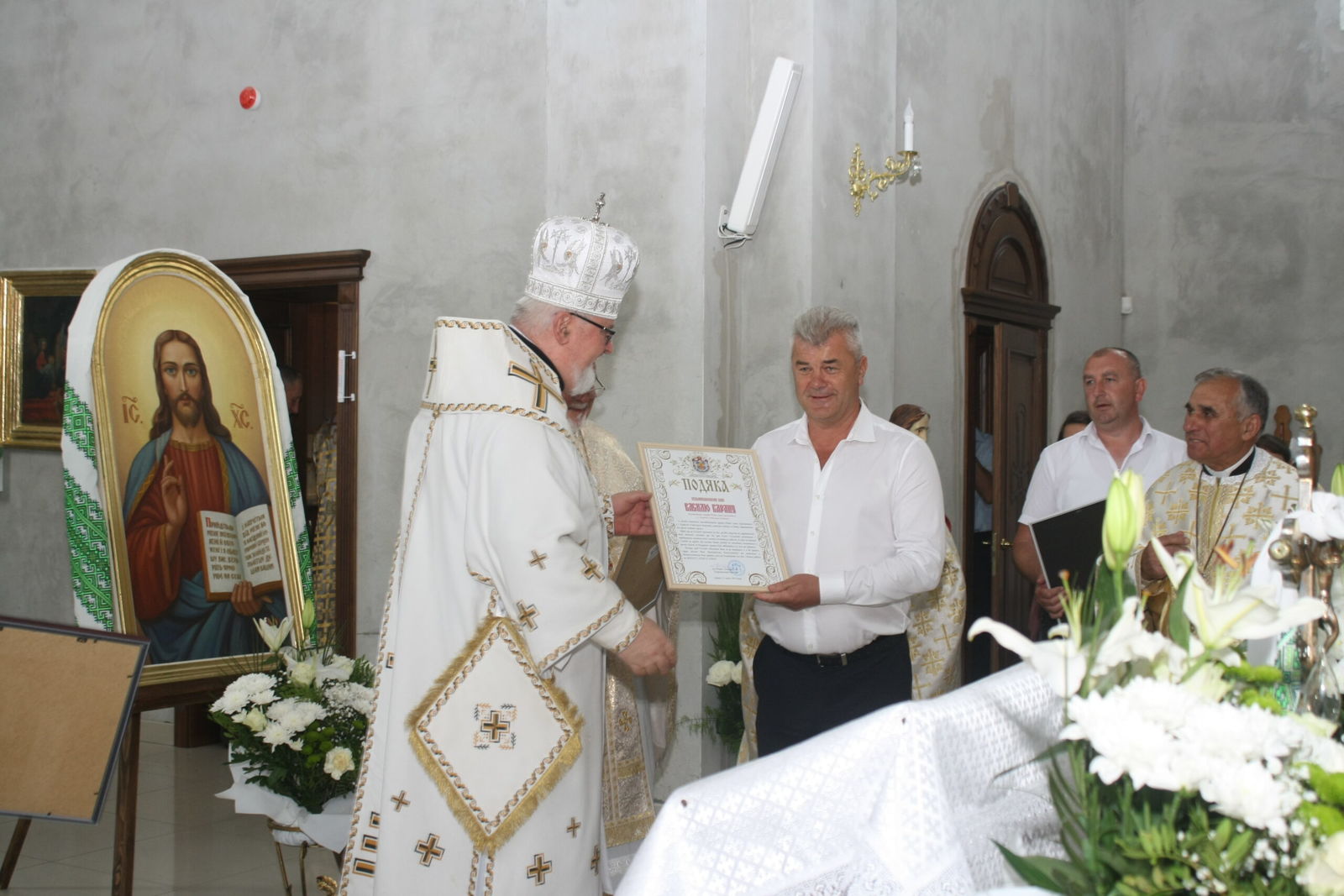 Після Літургії владика Тарас привітав усіх зі знаменною подією освячення храму, подякував пароху о. Олегу Цимбалі за його довголітню і невтомну працю та вручив подячні грамоти жертводавцям і усім, хто в особливий спосіб долучився до зведення цієї церкви. Архиєрей наголосив, що ця святиня стане не лише архітектурною окрасою, але й живим свідченням віри, єдності та наполегливої праці місцевої громади.