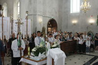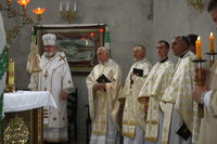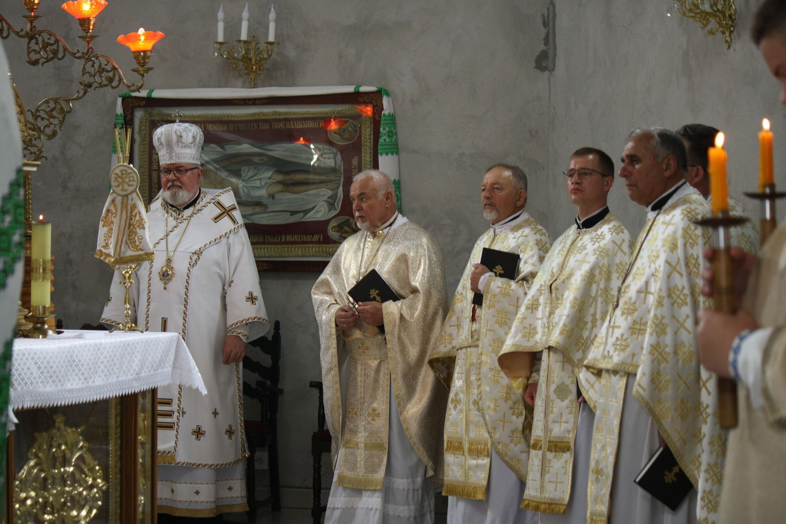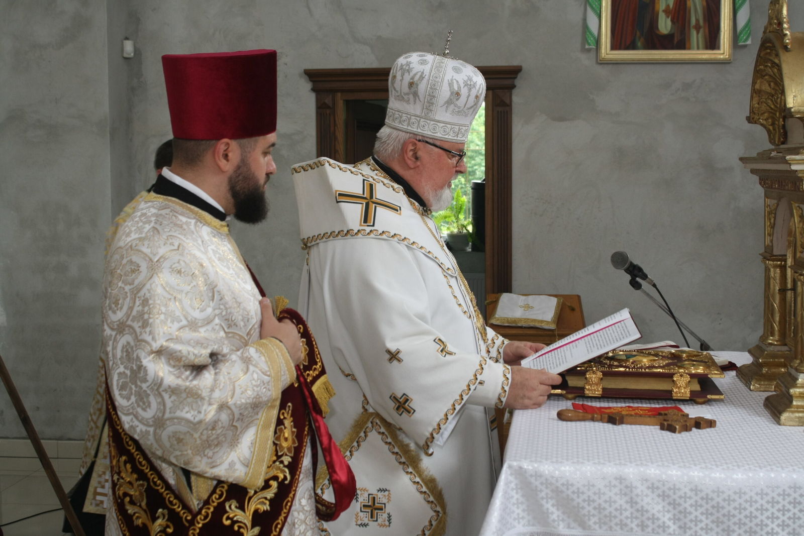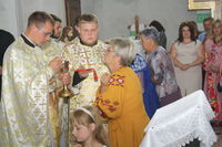 Святкове богослужіння розпочалося з освячення храму зсередини і ззовні. Владика Тарас прочитав молитви на освячення храму, прохаючи у Господа, щоб цей храм став оселею благодаті Божої, щоб у ньому достойно звершувалося священнодійство безкровної жертви та були вислухані молитви усіх, хто буде в ньому молитися. Після цього відбувся процесійний обхід довкола храму.