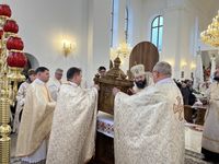 Богослужіння очолив єпископ Сокальсько-Жовківський Петро Лоза у співслужінні численного духовенства та при великій кількості вірних. Єпископа на подвір’ї храму вітали діти та молодь парафії. Адміністратор парафії та ігумен Жовківського монастиря отець Веніамин Чернега, ЧСВВ, запросив владику очолити святкове богослужіння та здійснити Чин посвячення храму. Про це інформує пресслужба Сокальсько-Жовківської єпархії УГКЦ.