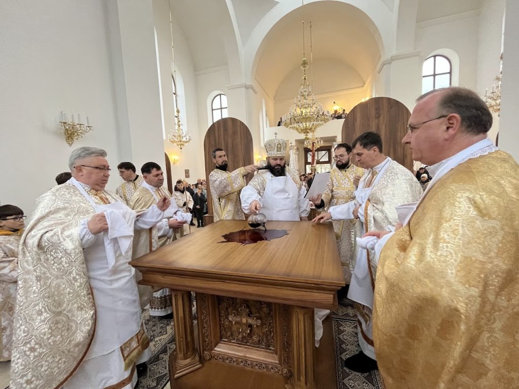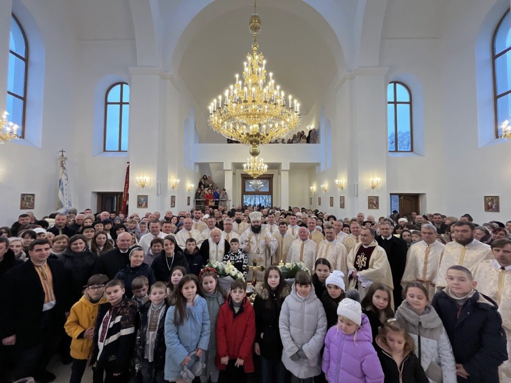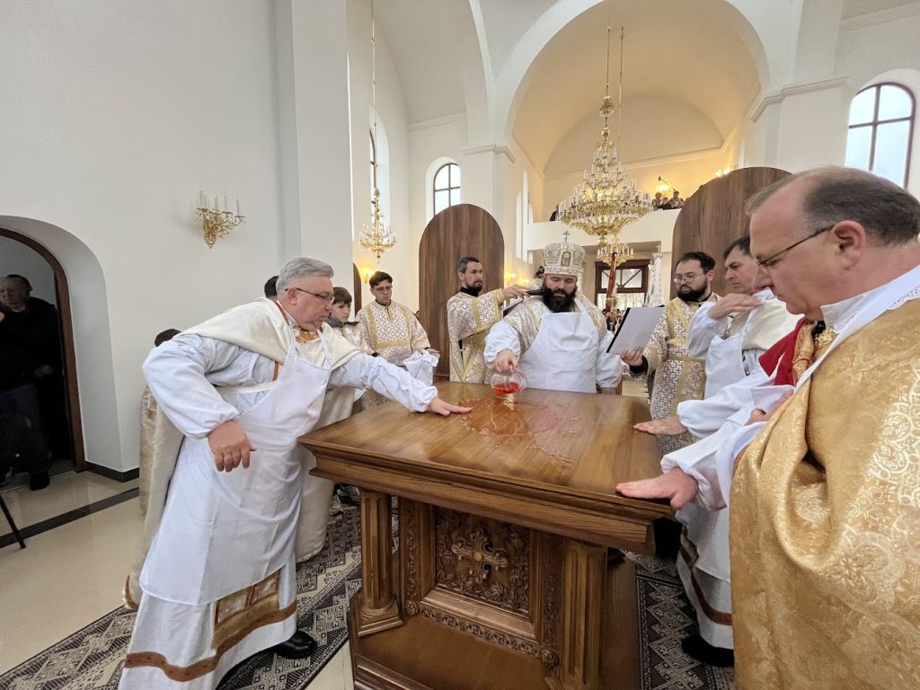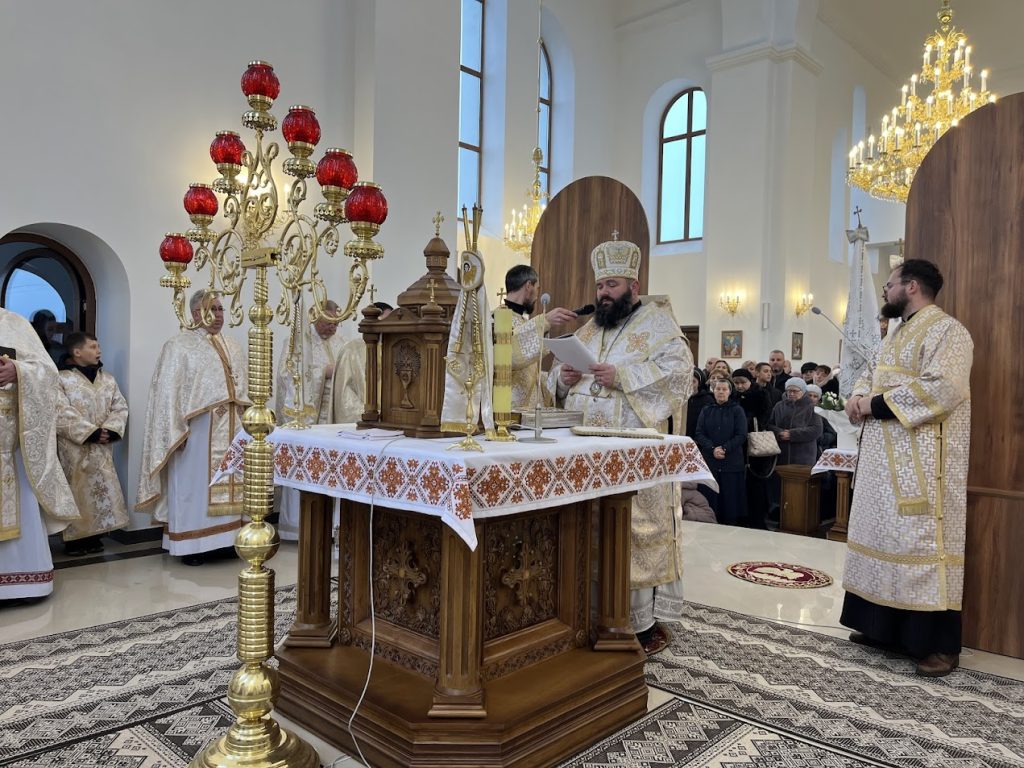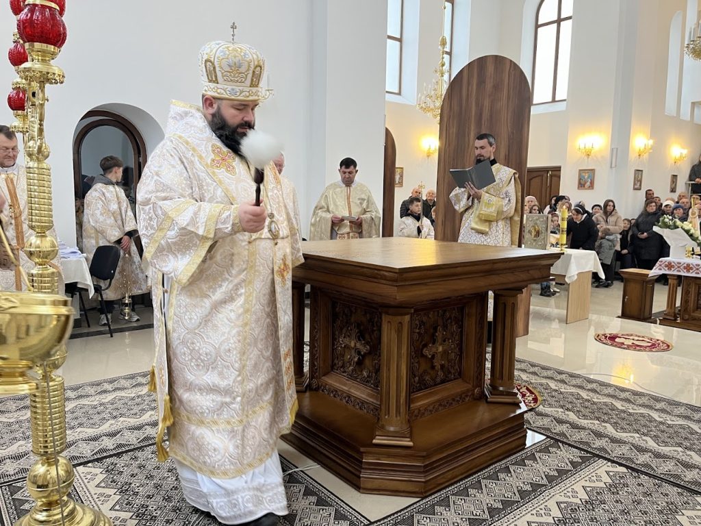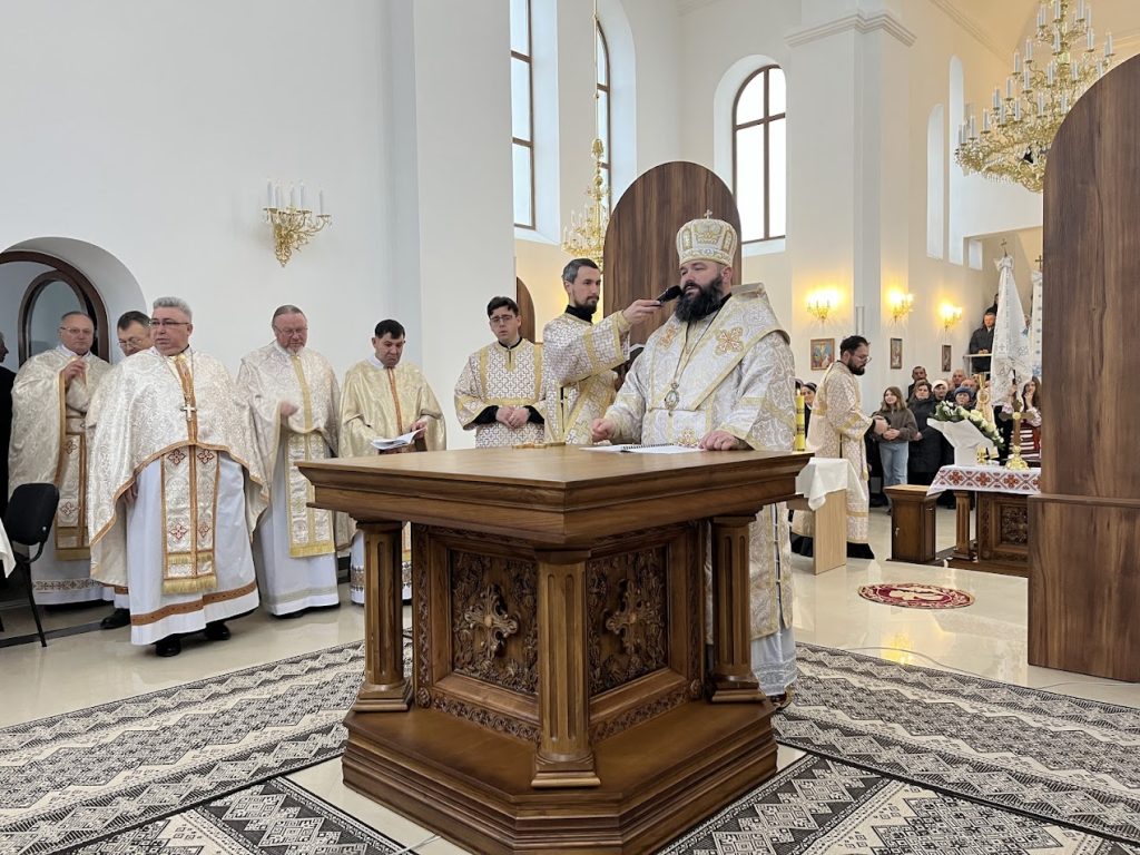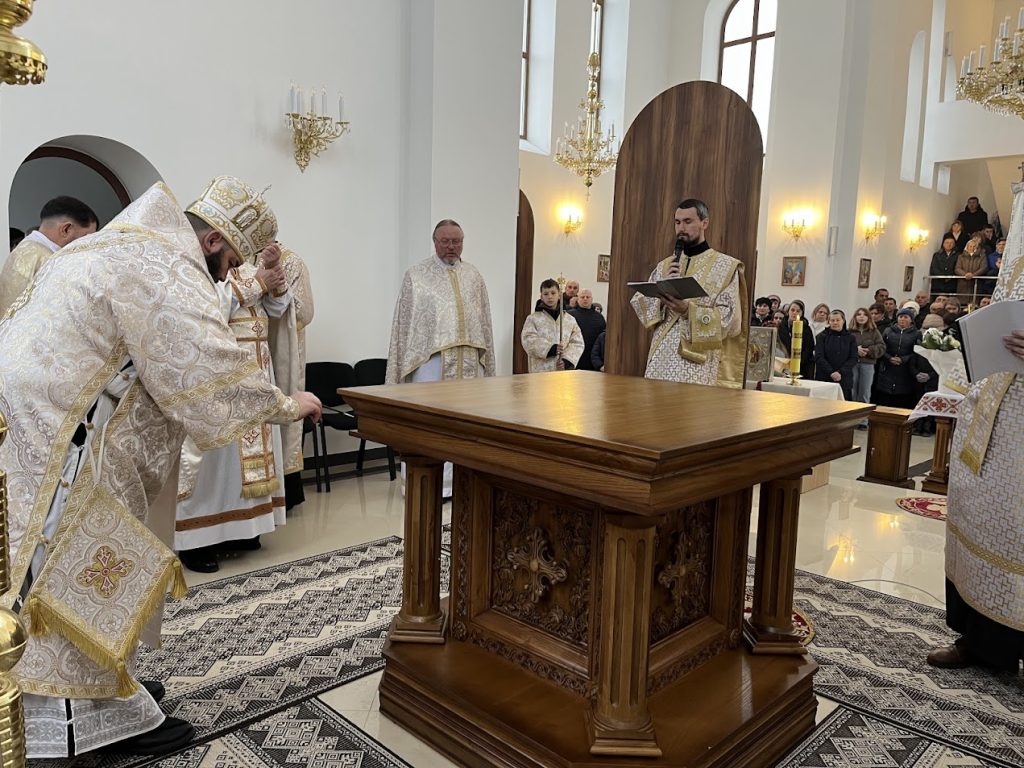 «Ми ввійшли, щоб освятити храм, який стає особливим даром, адже він є видимим знаком невидимої Божої присутності, знаком того, що Бог є зі своїм народом. Народ, який хоче віддавати славу Богові та свідчити свою вірність. У час, коли ворог нищить нашу землю, ми є свідками того, що потрібно не руйнувати, не стирати з лиця землі, а примножувати добро в світі, у якому живемо», — розпочав своє слово архиєрей.