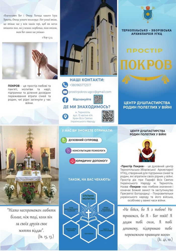 У неділю, 19 жовтня 2025 року, з благословення архиєпископа і митрополита Тернопільсько-Зборівського УГКЦ Теодора Мартинюка при парафії Всіх святих українського народу у місті Тернополі відбулося відкриття простору «Покров» — Центру душпастирства родин полеглих у війні.