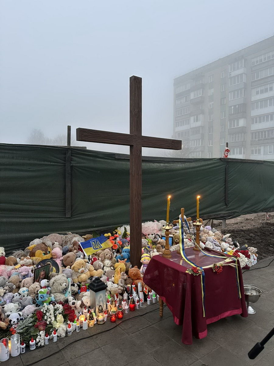 У Тернополі встановили та освятили пам’ятний хрест на вулиці Стуса поряд із місцем, де розташовувався будинок, зруйнований внаслідок атаки Російської Федерації 19 листопада.