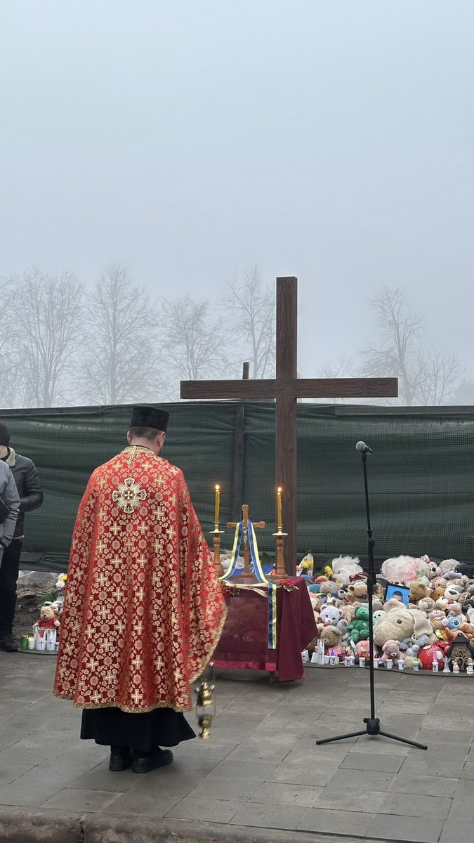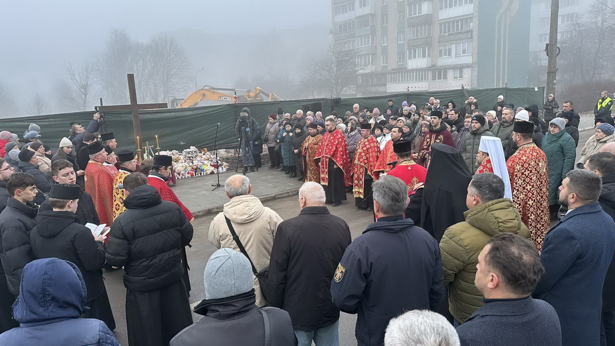 У Тернополі встановили та освятили пам’ятний хрест на вулиці Стуса поряд із місцем, де розташовувався будинок, зруйнований внаслідок атаки Російської Федерації 19 листопада.