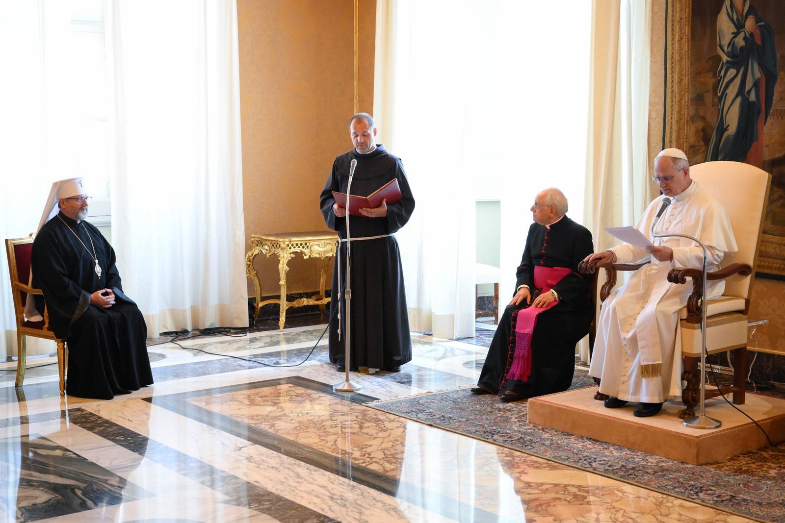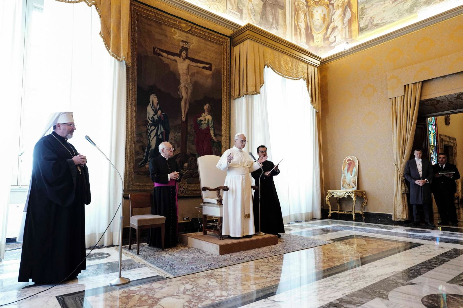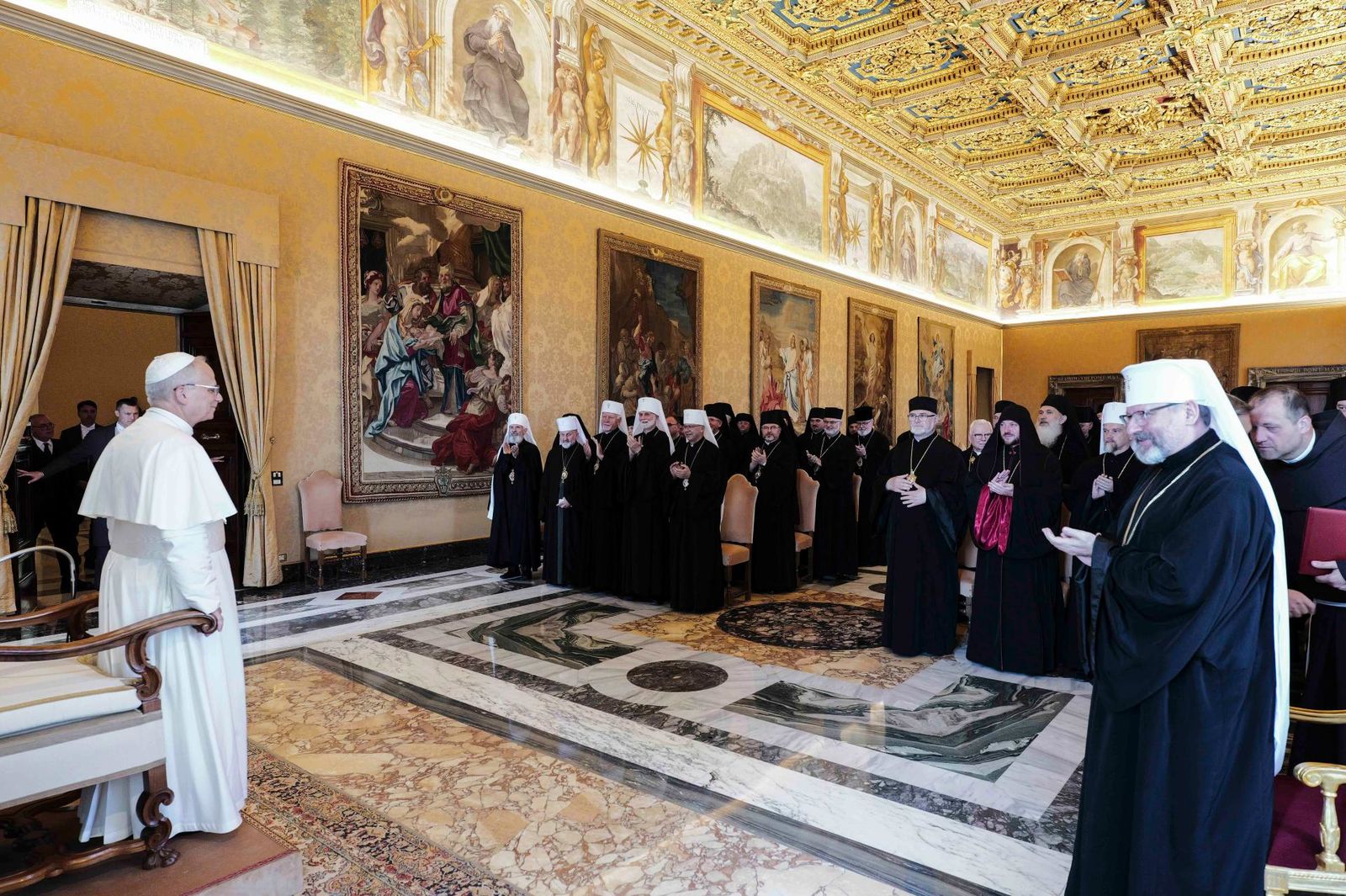 Від імені єпископів Синоду Блаженніший Святослав подарував Святішому Отцеві ікону святого архистратига Михаїла, покровителя Києва. Окрім цього, він передав Папі списки полонених та безвісти зниклих українців.