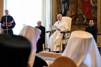 «Через Її материнське заступництво я молюся, щоб мир якнайшвидше повернувся у вашу Батьківщину», — сказав Папа Лев XIV та попросив єпископів помолитися «Отче наш» українською мовою. «Мені дуже сподобалось молитися з вами цю молитву минулої суботи», — зазначив Понтифік.
