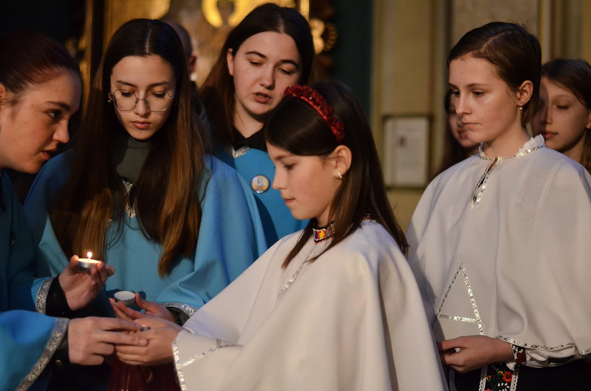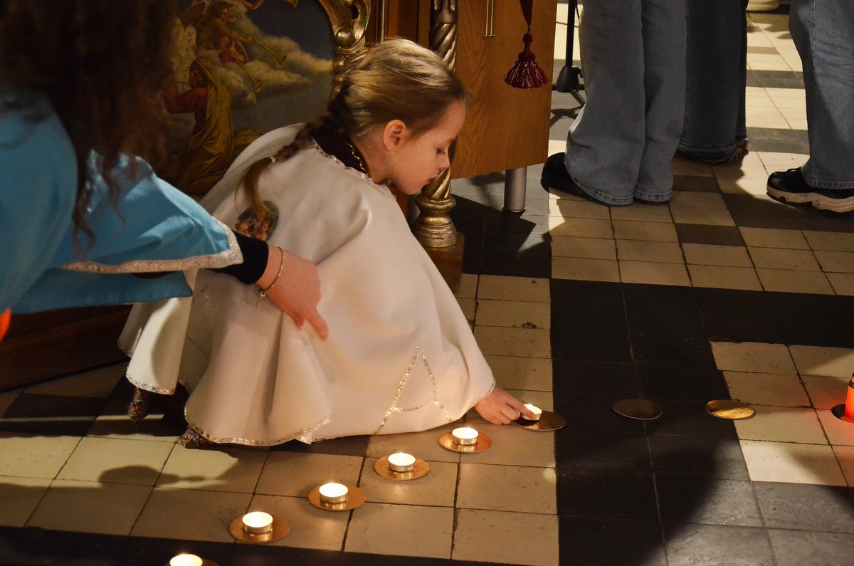 Десятки вервиці провадили учасники молодіжних організацій, а діти під час молитви викладали зі свічок символічну композицію. Молитву супроводжував молодіжний хор під керівництвом п. Оксани Гребеняк.