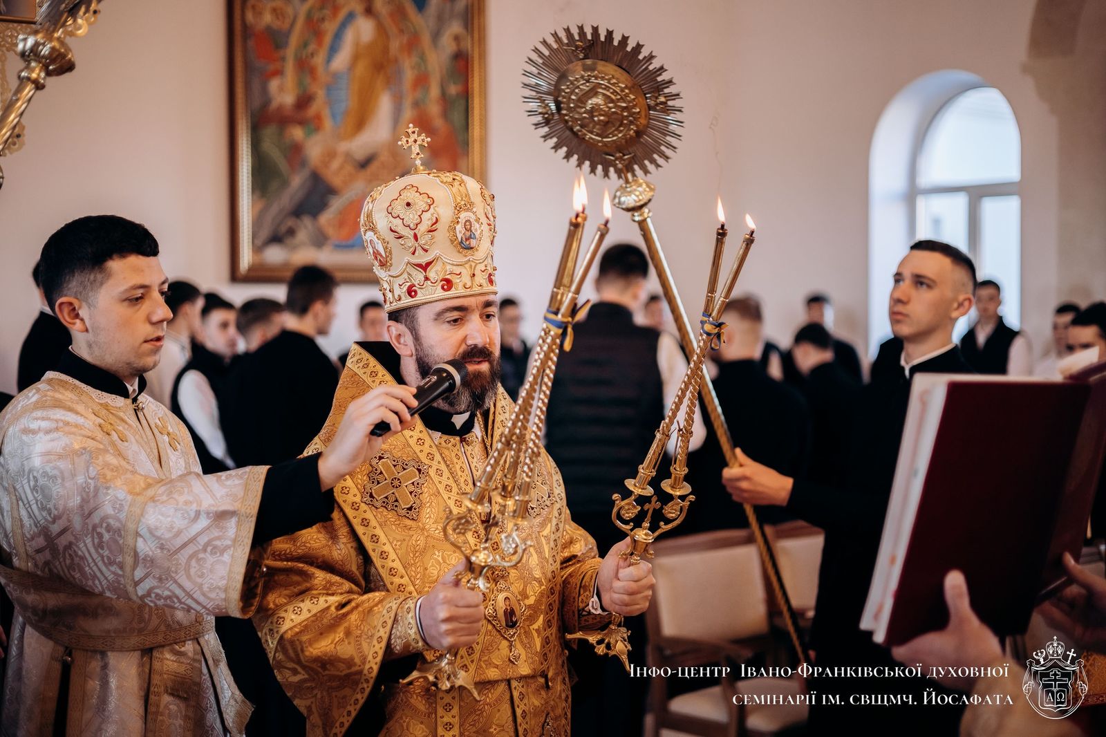 Звертаючись із проповіддю до присутніх, архиєрей мовив: «Сьогодні Українська Греко-Католицька Церква на заклик Єпископських Конференцій Європи молиться за мир в Україні, Святій Землі та цілому світі. Тому, на прохання архиєпископа і митрополита Івано-Франківського Володимира Війтишина, я прибув до семінарії, щоб молитися разом з вами».