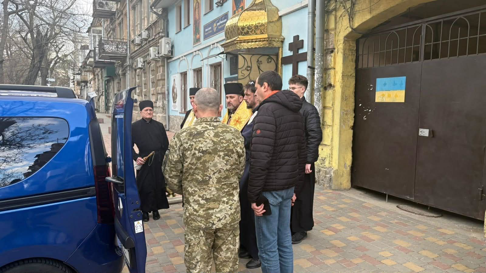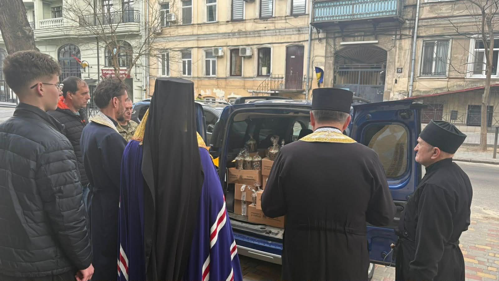 10 квітня 2026 року на території катедрального храму Святого апостола Андрія Первозванного в Одесі владика Михаїл Бубній, екзарх Одеський, благословив та освятив паски і великодні продуктові набори для родин прикордонників, які постраждали внаслідок атаки шахедів в ніч на 6 квітня.