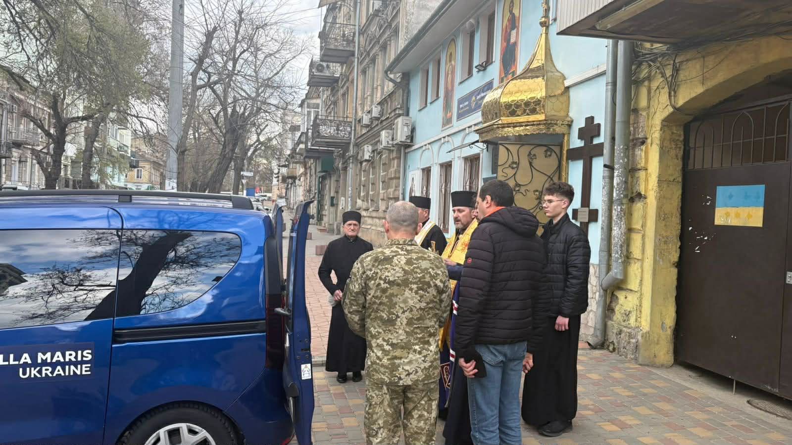 За повідомленням пресслужби Одеського екзархату УГКЦ, разом із єпископом співслужили сотрудник храму о. Ігор Тарас та військово-морський капелан о. Олександр Смеречинський. Саме він передасть освячені пасхальні набори сім’ям військовослужбовців Державної прикордонної служби України.