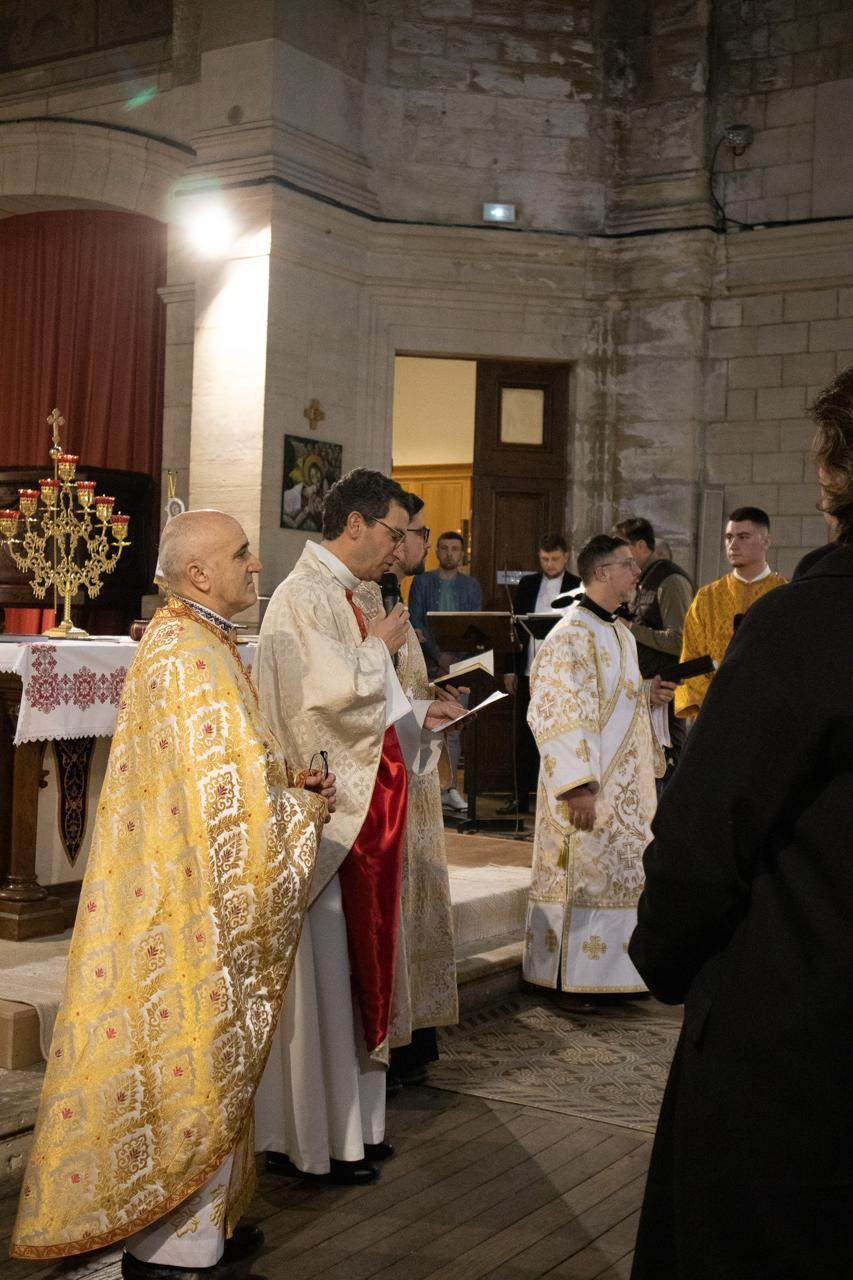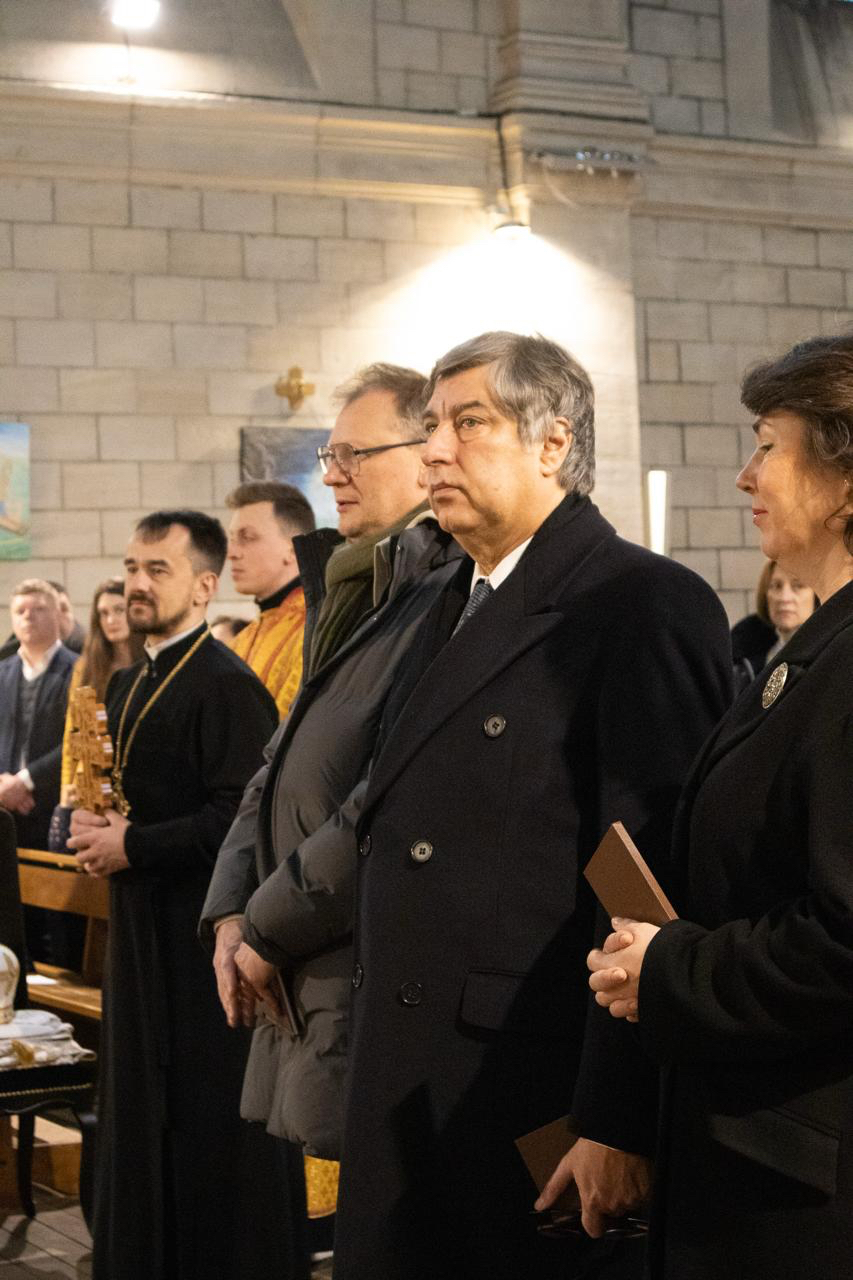 На богослужінні були присутні почесні гості та представники місцевої влади й духовенства, зокрема: Надзвичайний і Повноважний Посол України у Франції Вадим Омельченко, генеральна директорка лікарень спільного керівництва Діана Петтер, муніципальна радниця та відповідальна за справи культів Анн де Жакльо, генеральний вікарій дієцезії Версаля отець Марк Булль та парох і декан у парафії Сен-Жермен-ан-Ле отець Бруно Ірондель.
