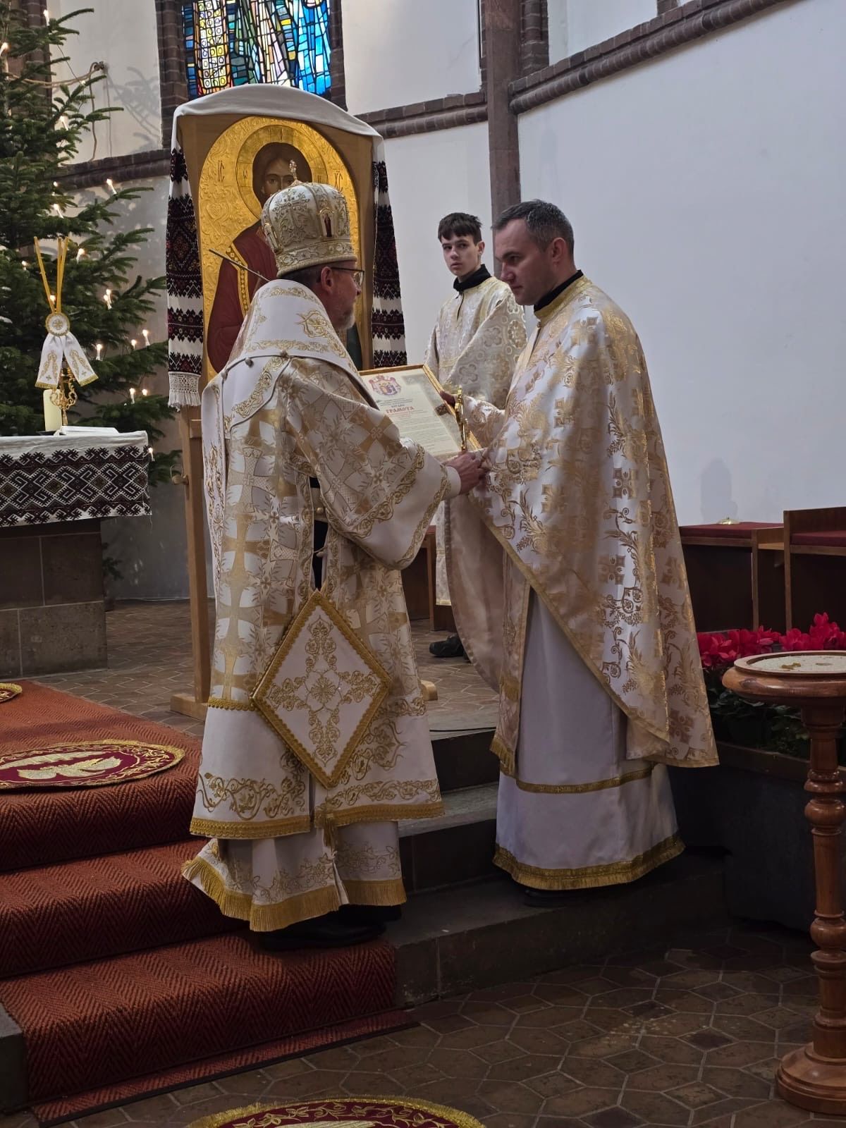 Після Літургії єпископ вручив душпастирю для українців у Маґдебурґу о. Андрію Кадлубіцькому грамоту для громади з нагоди 25-ліття від дня заснування. «У єдності з Вами підношу подячну молитву до Господа за всіх, хто з вірою, терпеливістю і жертовною любов’ю розбудовував духовне життя цієї спільноти», — йдеться у грамоті.
