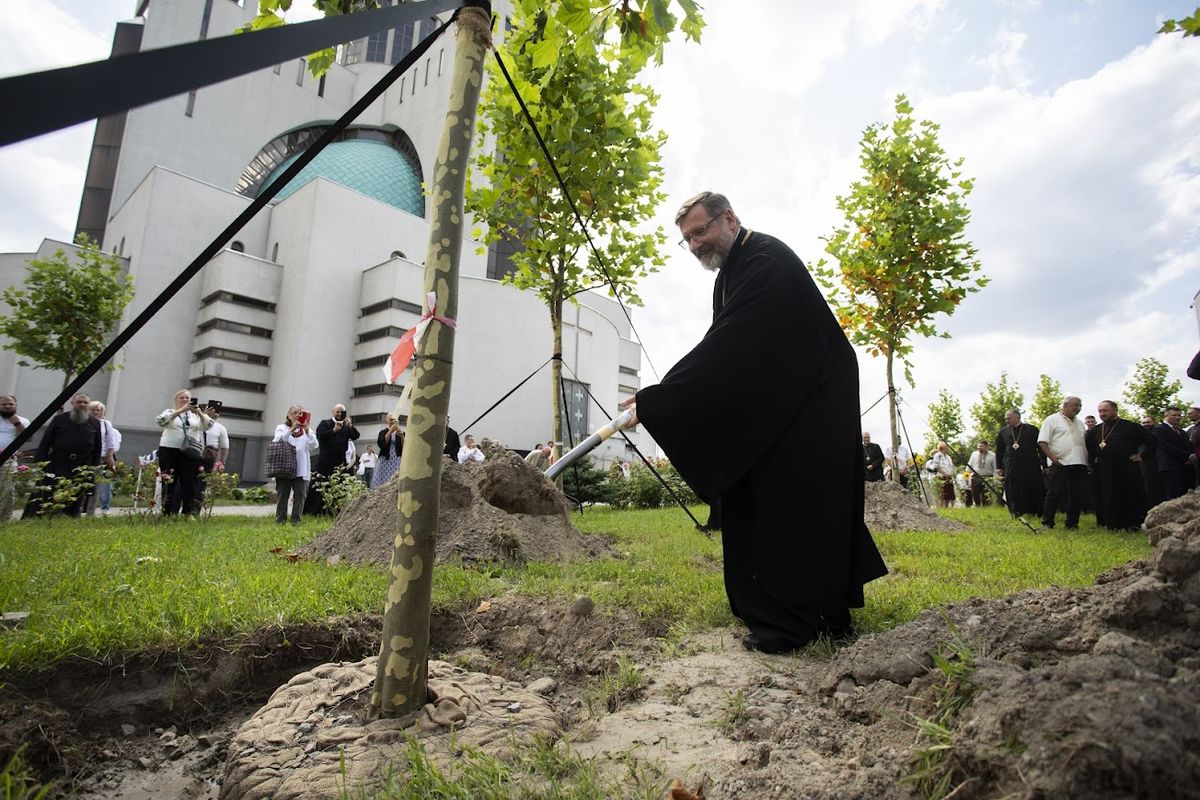 Як повідомив настоятель собору о. Андрій Боднарук, шестиметрові кленоподібні платани будуть утворювати алею. «Посаджені єпископами із різних частин нашої Церкви дерева підпишуть на честь єпархій», — сказав священник.