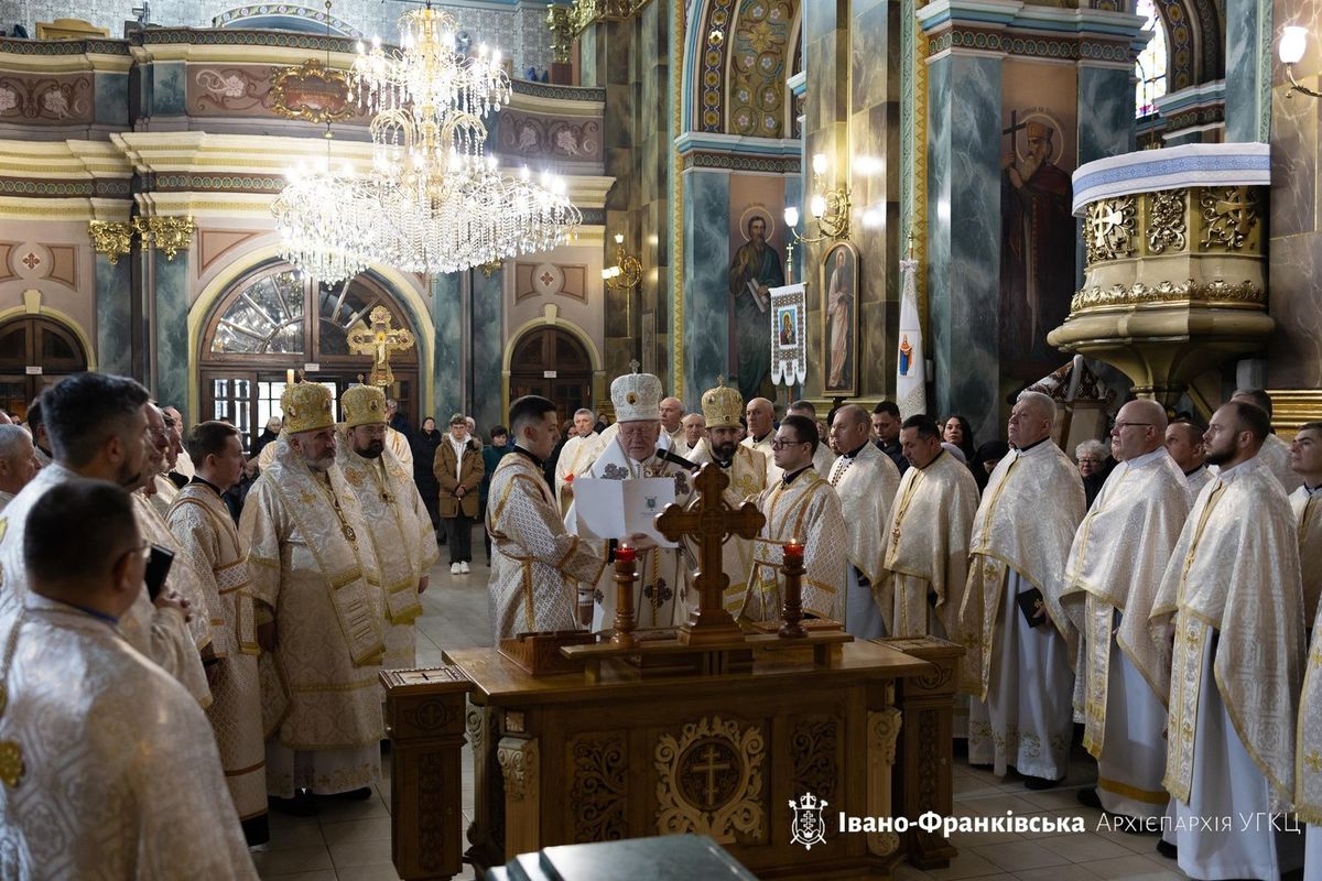 У молитві Архиєрейської Божественної Літургії, яку очолив митрополит Івано-Франківський, єдналися єпарх Коломийський Василій Івасюк, Микола Семенишин, єпископ-помічник Івано-Франківської архиєпархії, Петро Голіней, єпископ-помічник Коломийської єпархії УГКЦ, а також священнослужителі, які прибули до собору разом зі своїми вірними з різних парафій митрополії. Про це розповідає Департамент інформації Івано-Франківської архиєпархії УГКЦ.