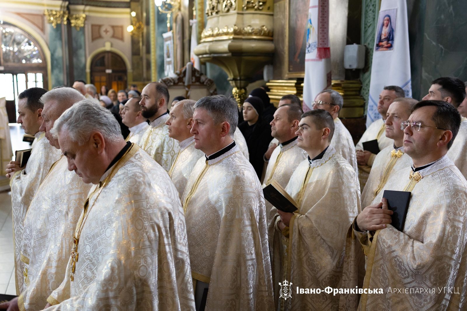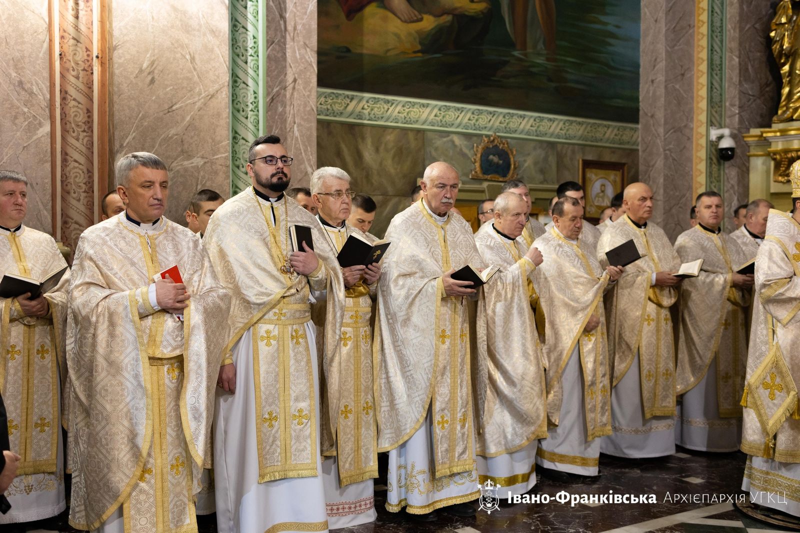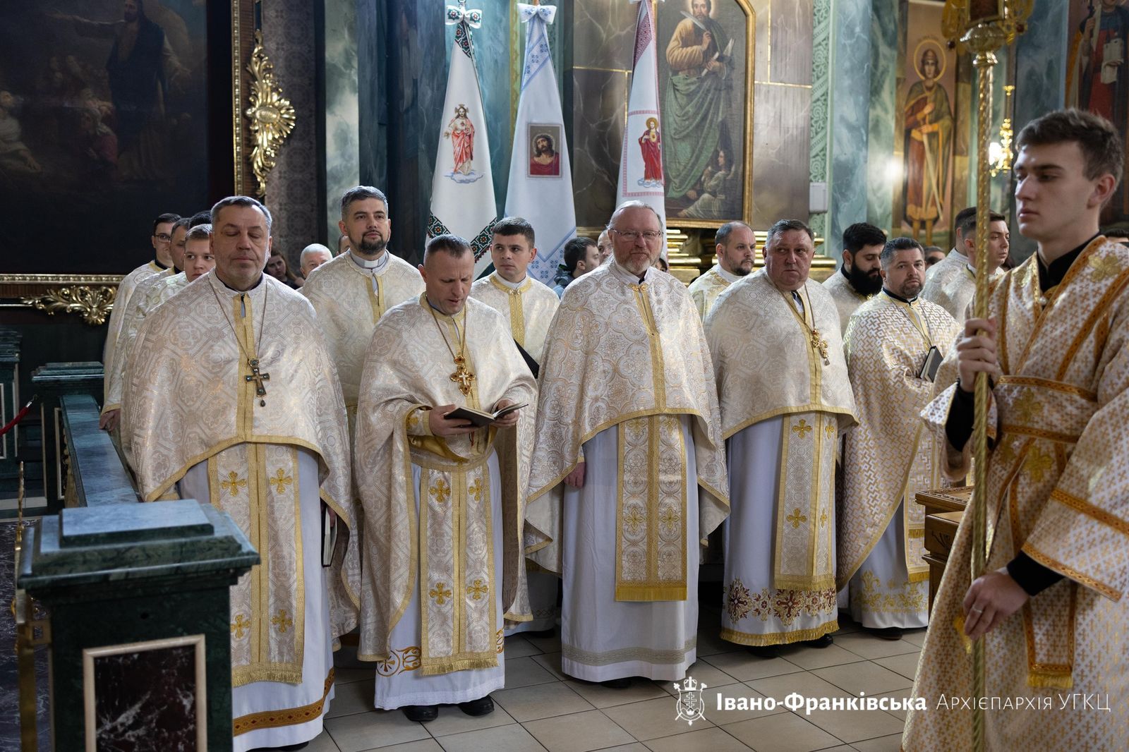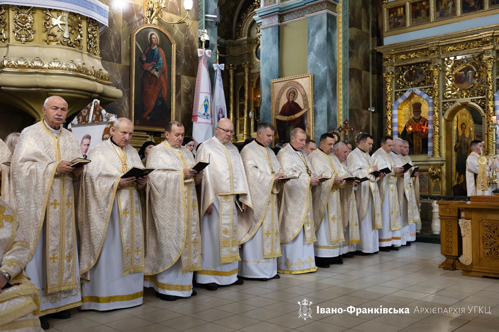 У молитві Архиєрейської Божественної Літургії, яку очолив митрополит Івано-Франківський, єдналися єпарх Коломийський Василій Івасюк, Микола Семенишин, єпископ-помічник Івано-Франківської архиєпархії, Петро Голіней, єпископ-помічник Коломийської єпархії УГКЦ, а також священнослужителі, які прибули до собору разом зі своїми вірними з різних парафій митрополії. Про це розповідає Департамент інформації Івано-Франківської архиєпархії УГКЦ.