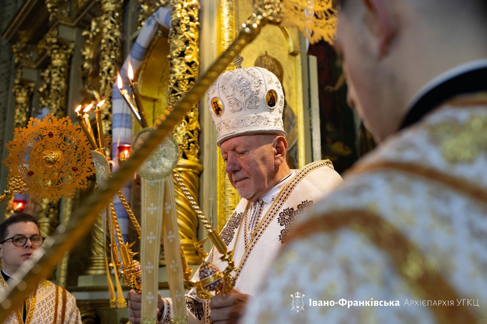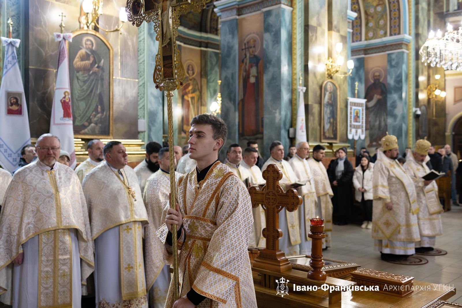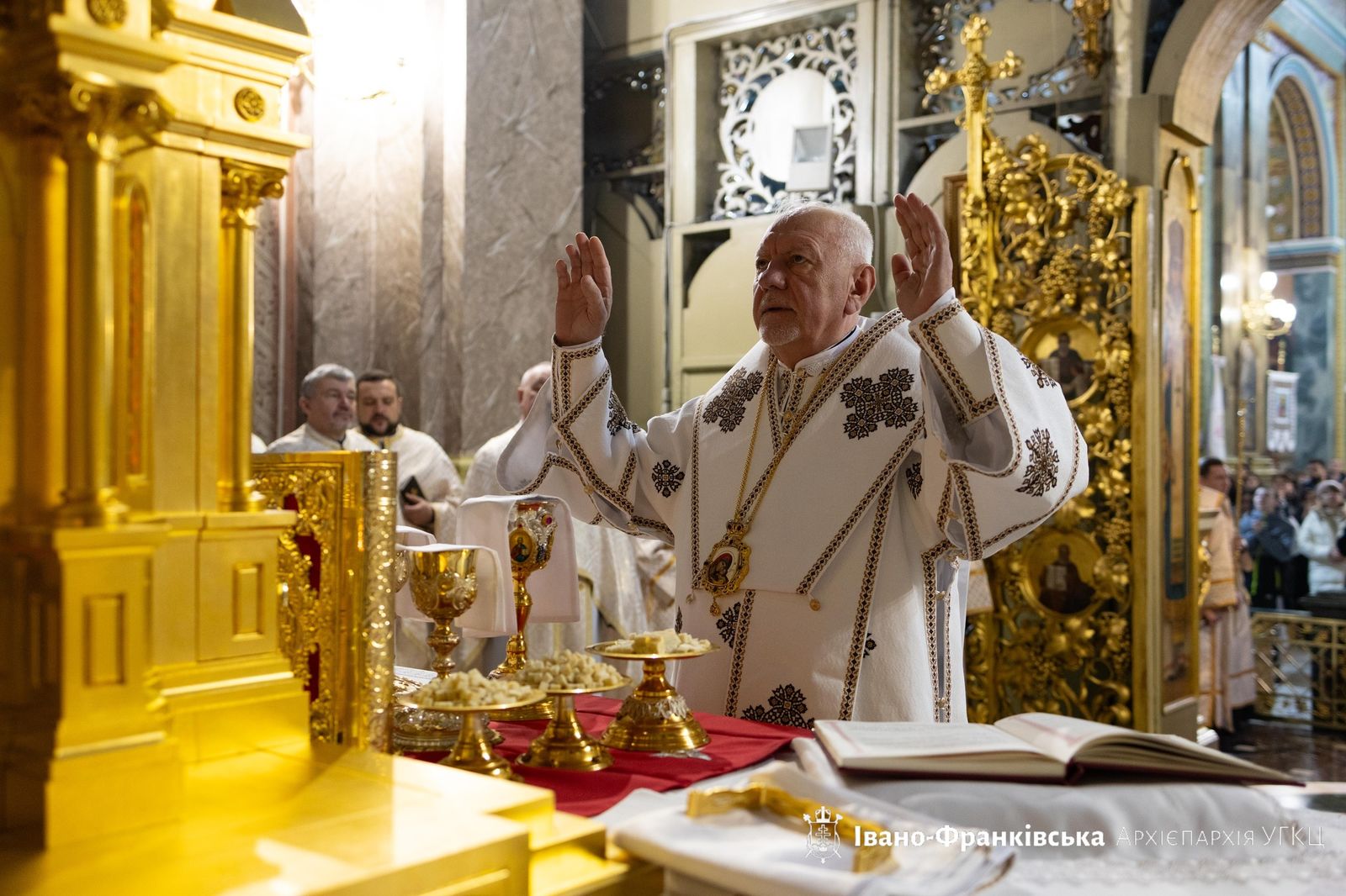 У молитві Архиєрейської Божественної Літургії, яку очолив митрополит Івано-Франківський, єдналися єпарх Коломийський Василій Івасюк, Микола Семенишин, єпископ-помічник Івано-Франківської архиєпархії, Петро Голіней, єпископ-помічник Коломийської єпархії УГКЦ, а також священнослужителі, які прибули до собору разом зі своїми вірними з різних парафій митрополії. Про це розповідає Департамент інформації Івано-Франківської архиєпархії УГКЦ.