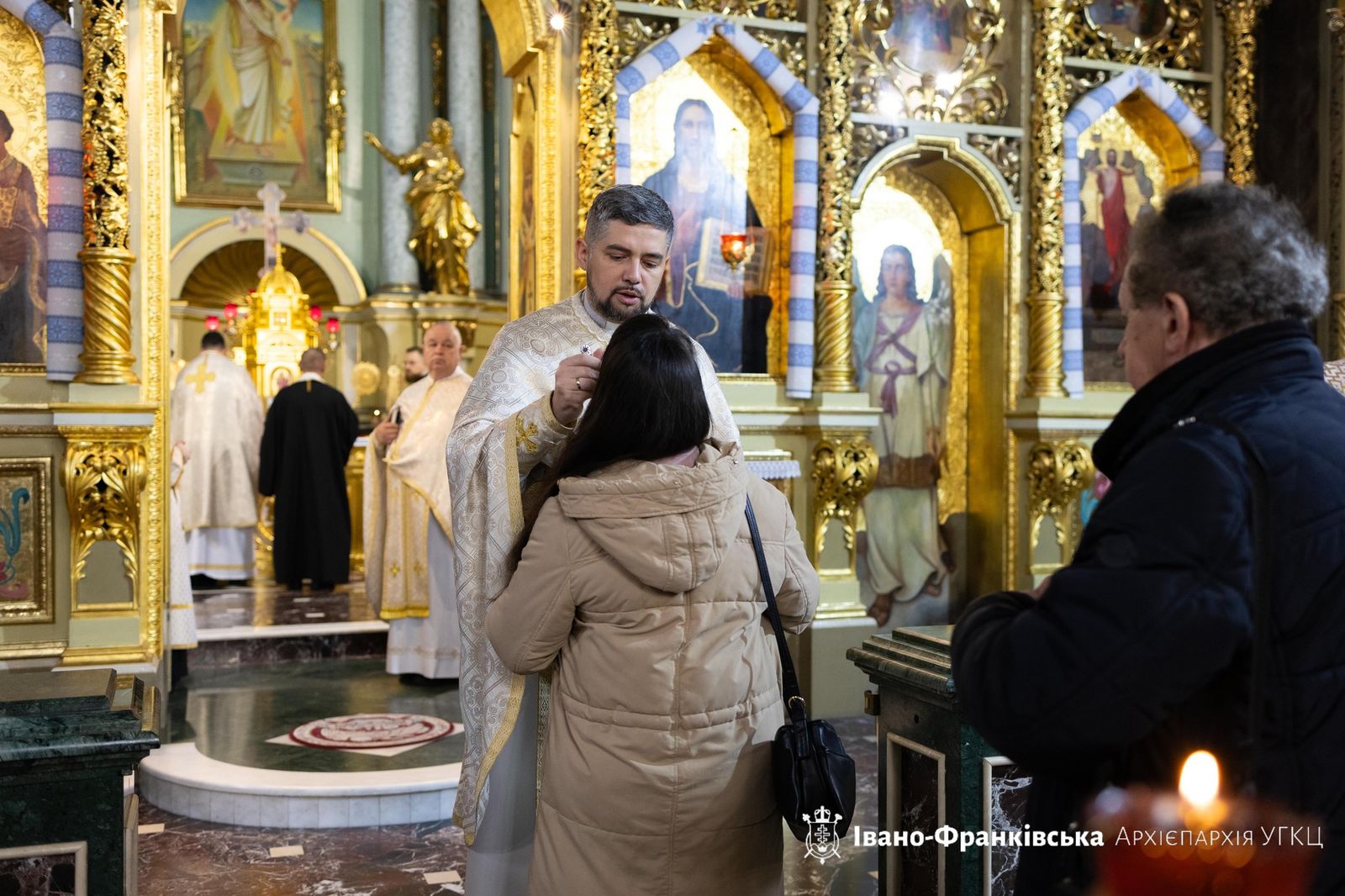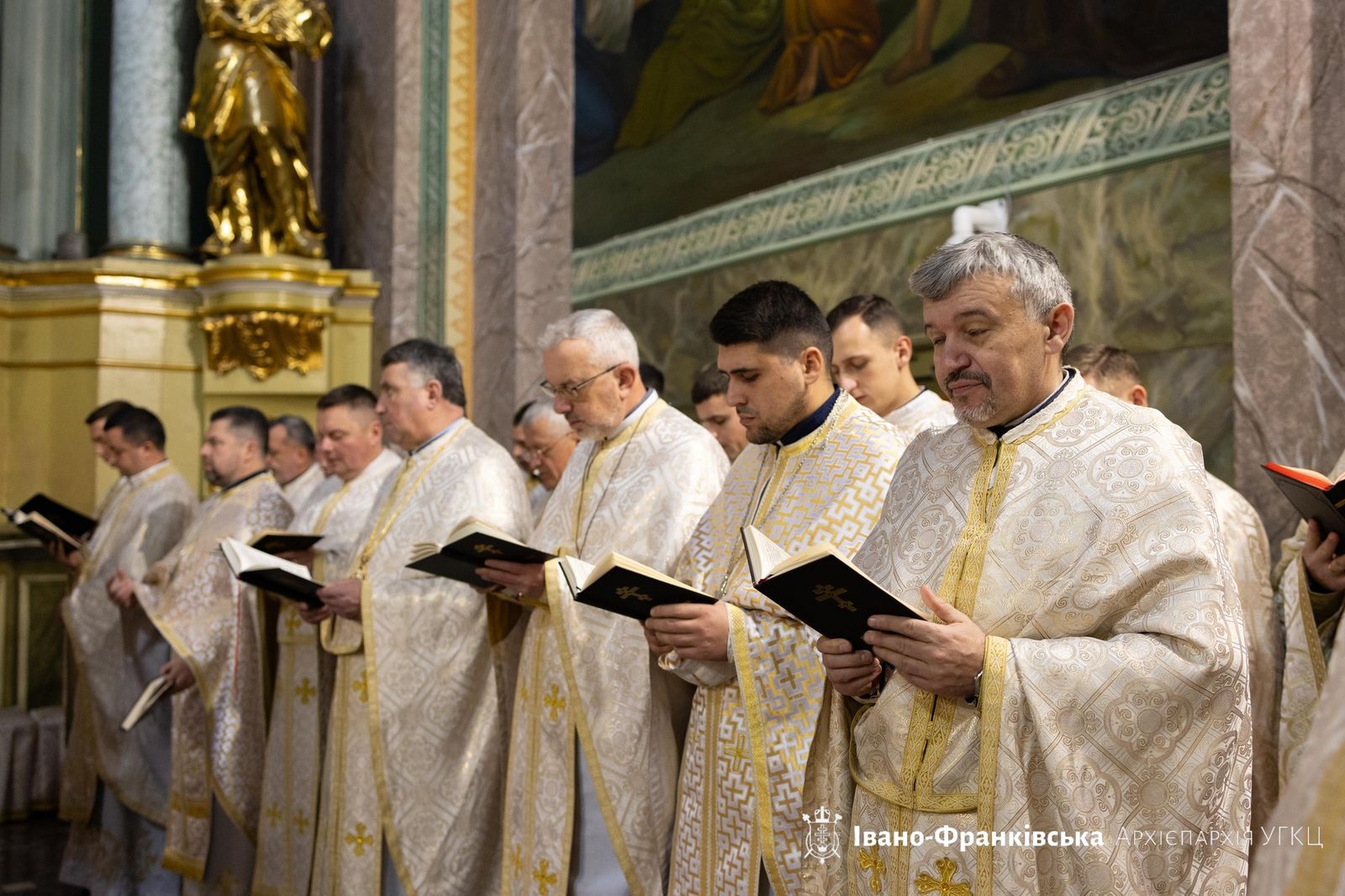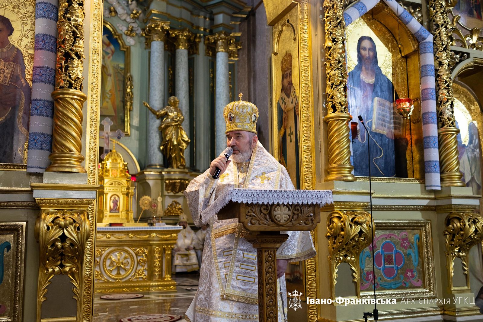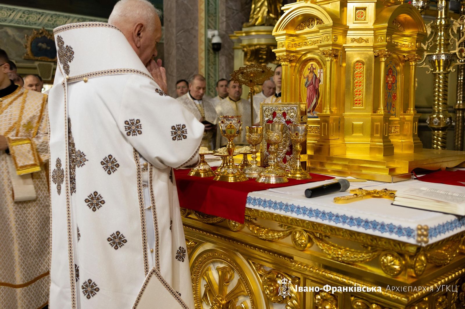 У молитві Архиєрейської Божественної Літургії, яку очолив митрополит Івано-Франківський, єдналися єпарх Коломийський Василій Івасюк, Микола Семенишин, єпископ-помічник Івано-Франківської архиєпархії, Петро Голіней, єпископ-помічник Коломийської єпархії УГКЦ, а також священнослужителі, які прибули до собору разом зі своїми вірними з різних парафій митрополії. Про це розповідає Департамент інформації Івано-Франківської архиєпархії УГКЦ.