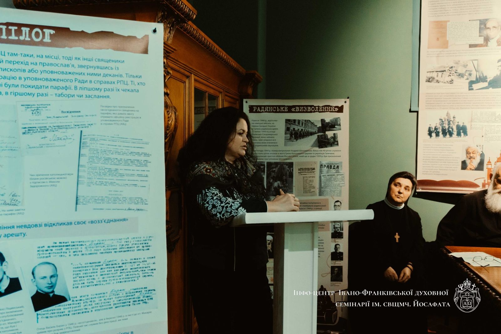 Першою доповідачкою стала п. Галина Беднарчик, директорка музею. Вона представила панораму подій, які відбулися у XX столітті, що призвели до псевдособору ліквідації УГКЦ: «Що було загрозою для такої величезної країни, як радянський союз, який займав пів континенту, у Греко-Католицькій Церкві, яка вміщувалася у порівнянні з масштабом СРСР у досить компактних географічних рамках? У ній вони бачили страшного ворога. Наша Церква була бастіоном української ідентичності. Більшість священників мали вищу освіту, були лідерами громад, просвітниками. Ними було важко управляти, адже мали свою думку та її відстоювали».