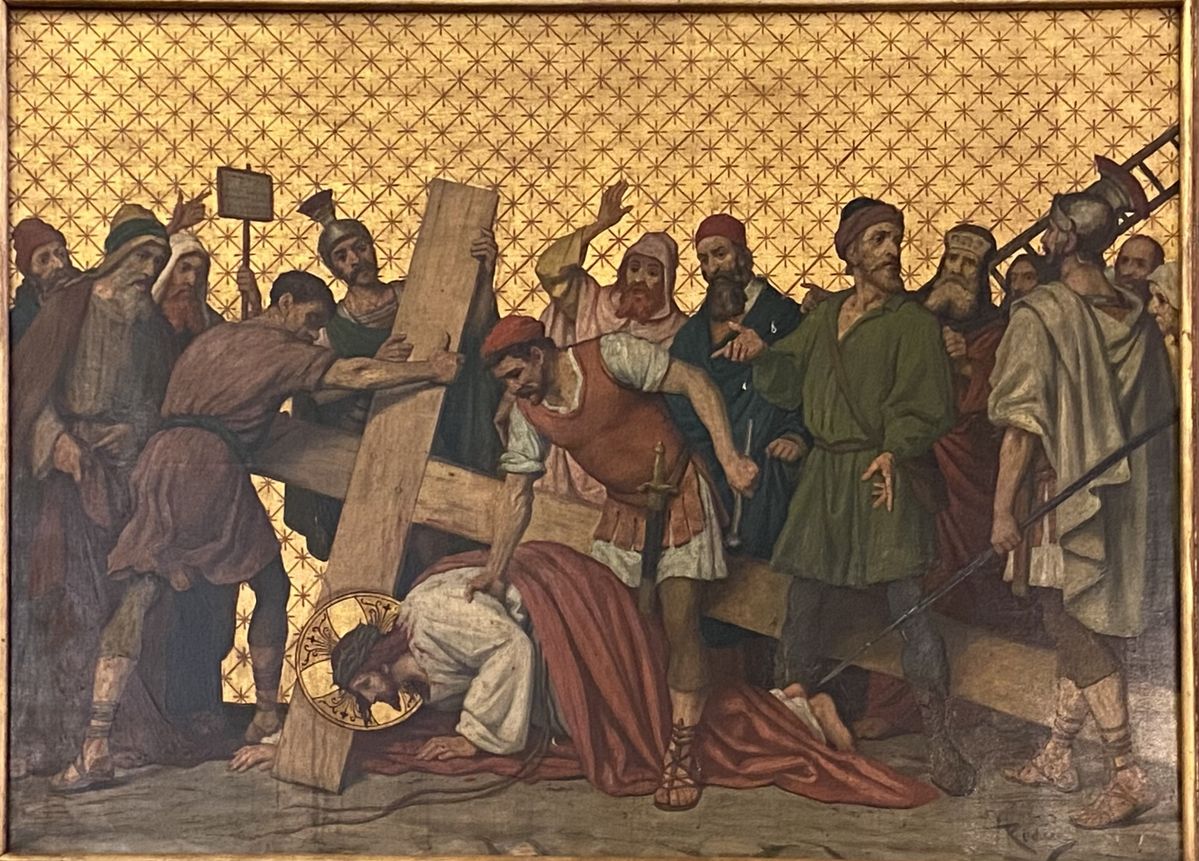 - що символізує дорога Ісуса на Голгофу та Його падіння під хрестом?