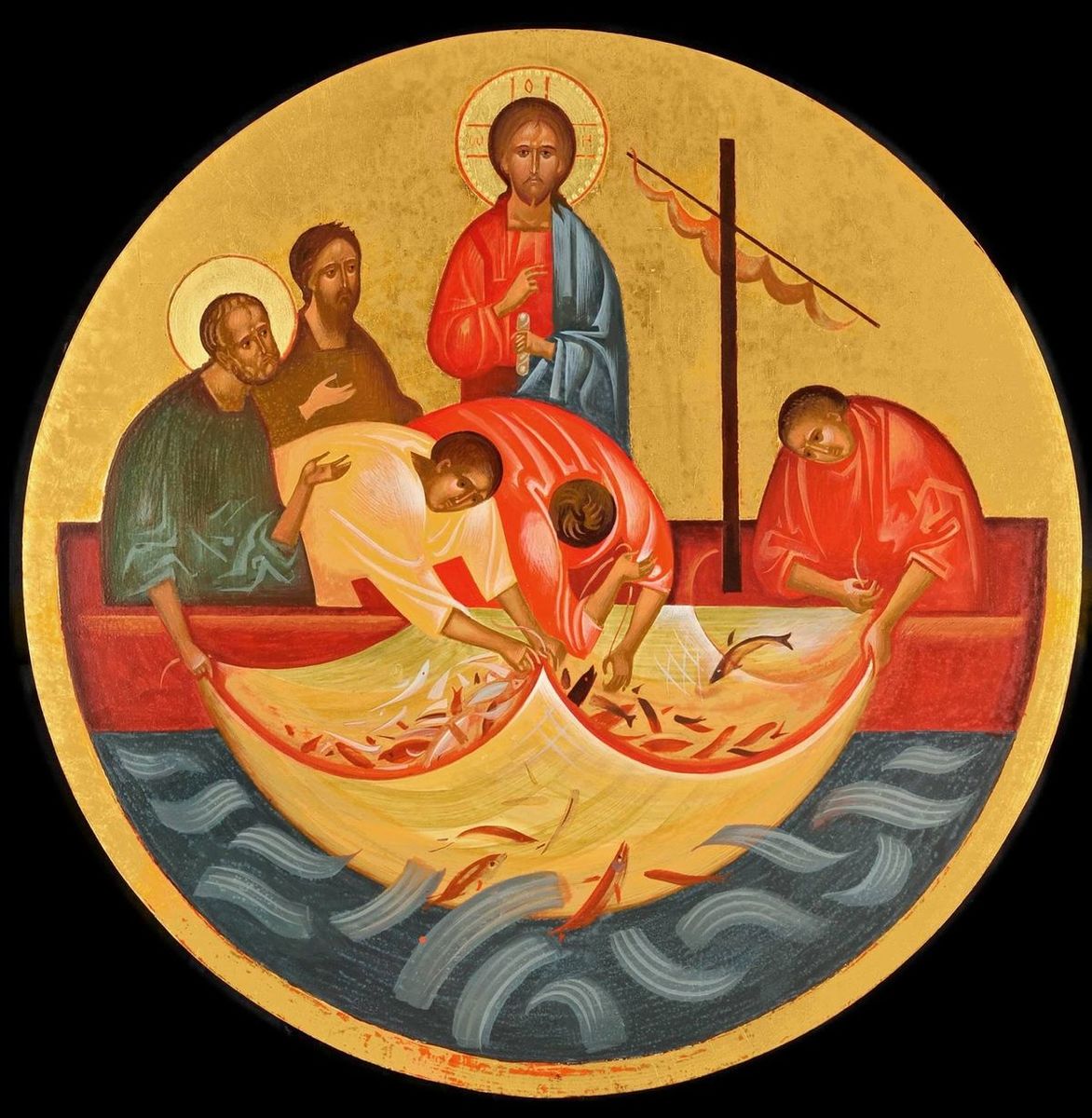 У певний момент Господь каже Симону Петру закинути сіті. Той спочатку вагається, кажучи, що вже робив це і нічого не впіймав. Проте, коли все ж таки після слів Христових «поступити во глибінь» (Лк.5, 4), він закинув їх, то вловив дуже багато риби, так, що їх човен її не вміщав і потрібною стала допомога інших.