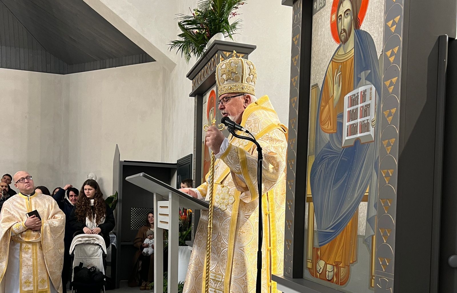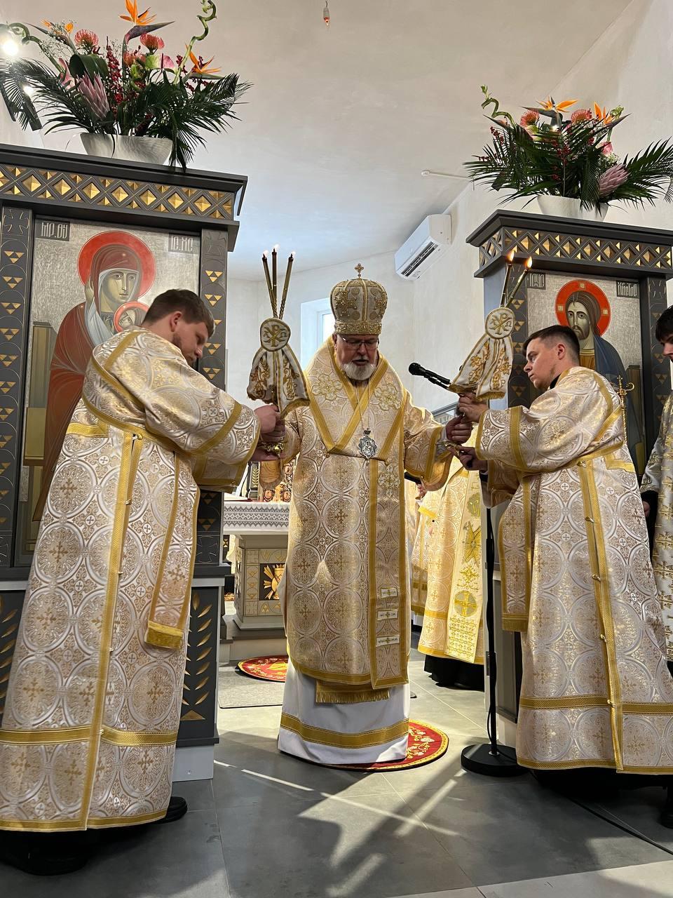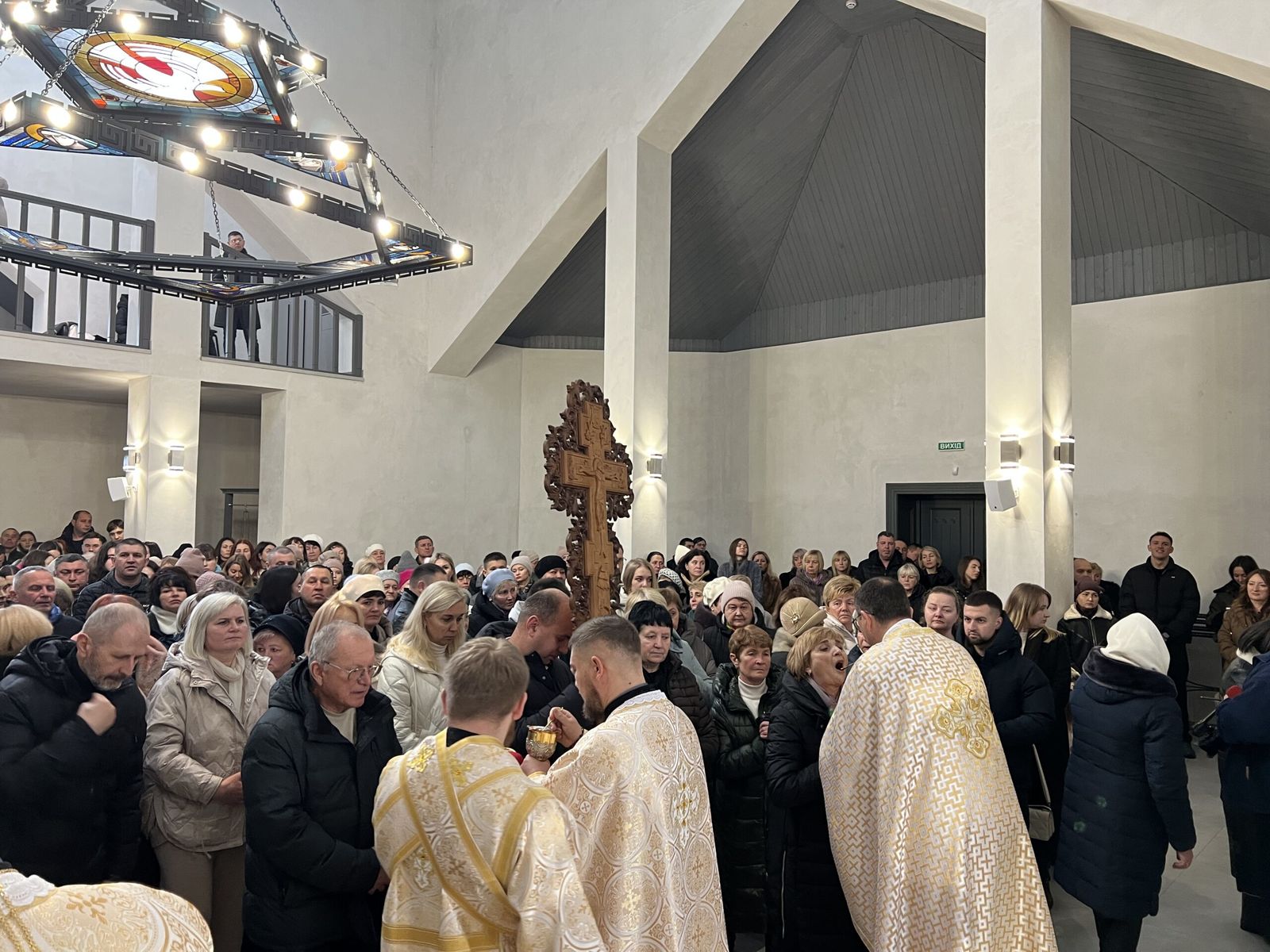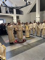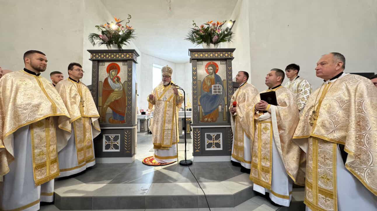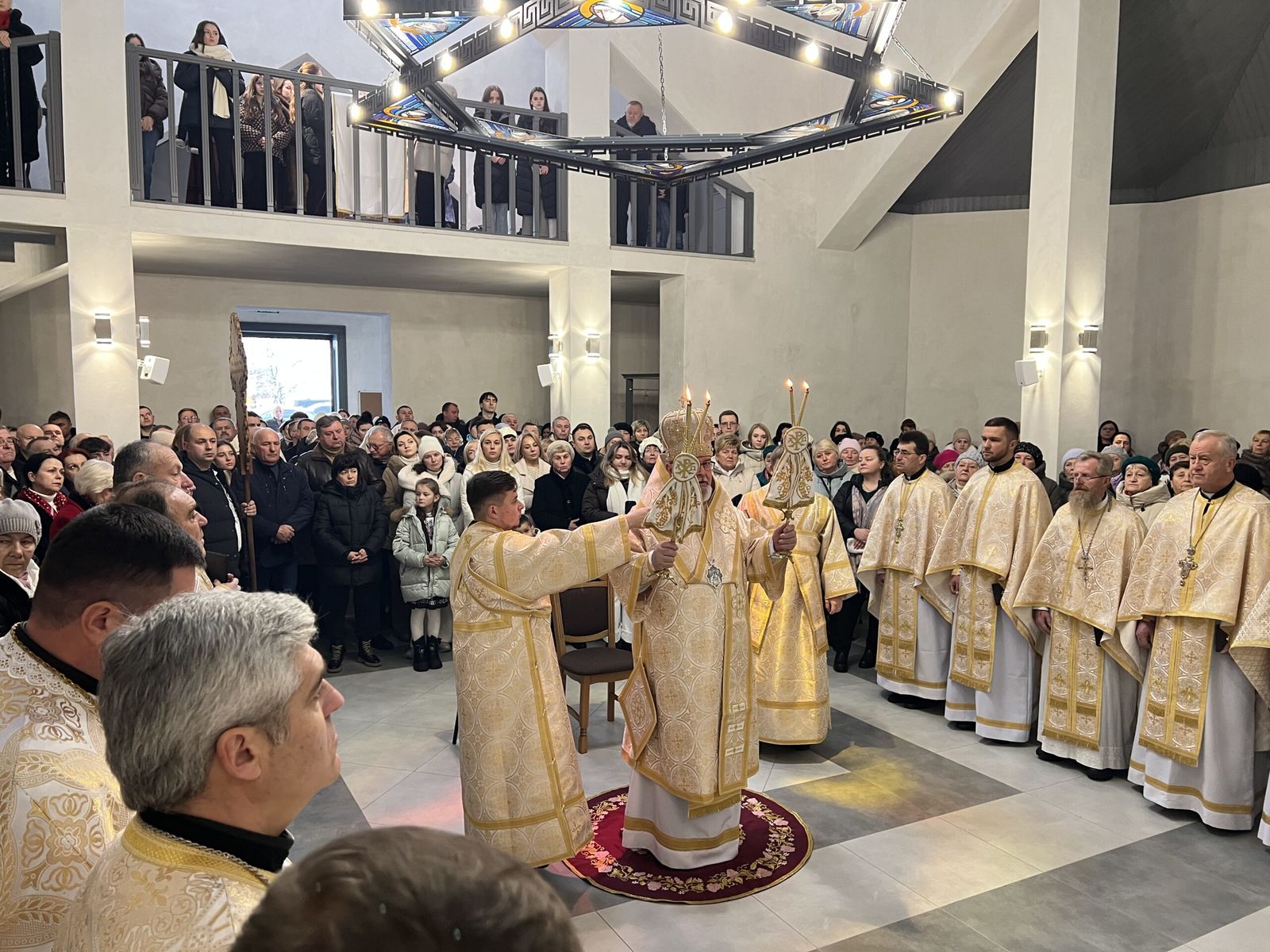 Після Літургії владика Тарас привітав усіх зі знаменною подією освячення храму, подякував пароху о. Віталію Лесіву за його невтомну працю, а також усім, хто в особливий спосіб долучився до зведення цієї церкви, наголосивши, що вона стане не лише архітектурною окрасою міста, але й живим свідченням віри, єдності та наполегливої праці громади.
