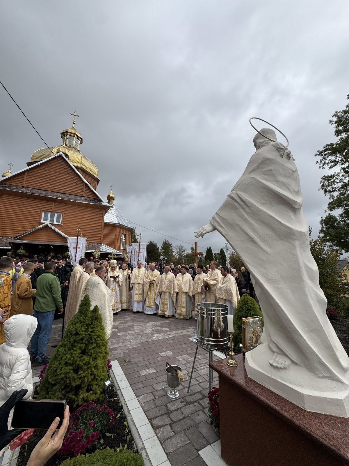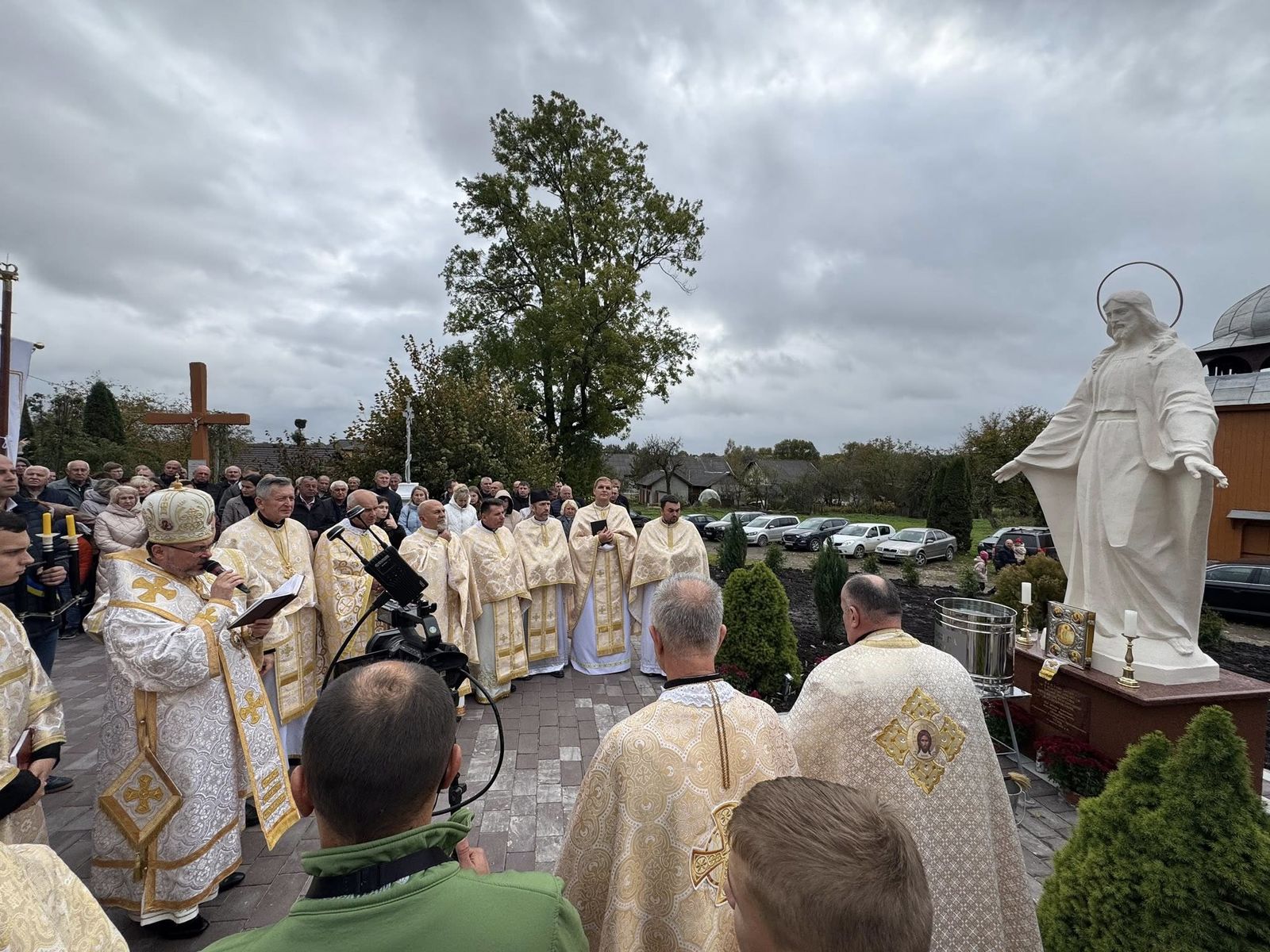 Після завершення Літургії владика Ярослав подякував о. Петру Костю та всім, хто долучився до оновлення храму та будівництва дзвіниці. «Велике спасибі, меценатам, церковній громаді Покрова Пресвятої Богородиці, які у нелегкі часи війни і економічної розрухи взялися за благородну справу», — наголосив єпископ.