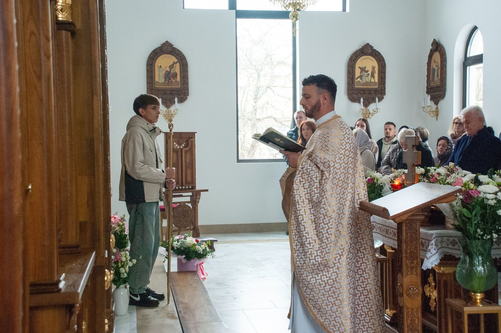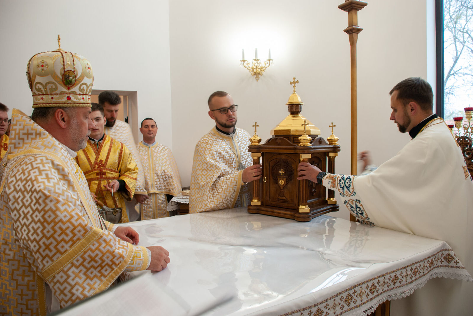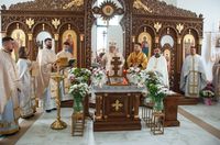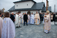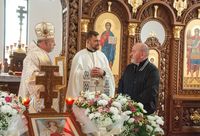 Після Літургії єпископ Йосафат подякував отцю Петру за належне адміністрування будівництва храму, служіння парафіяльній громаді, та нагородив його набедреником. Також канцлер о. Михайло Паньків зачитав грамоту від Блаженнішого Святослава, адресована отцю Петру та головним будівничим та жертводавцям храму.