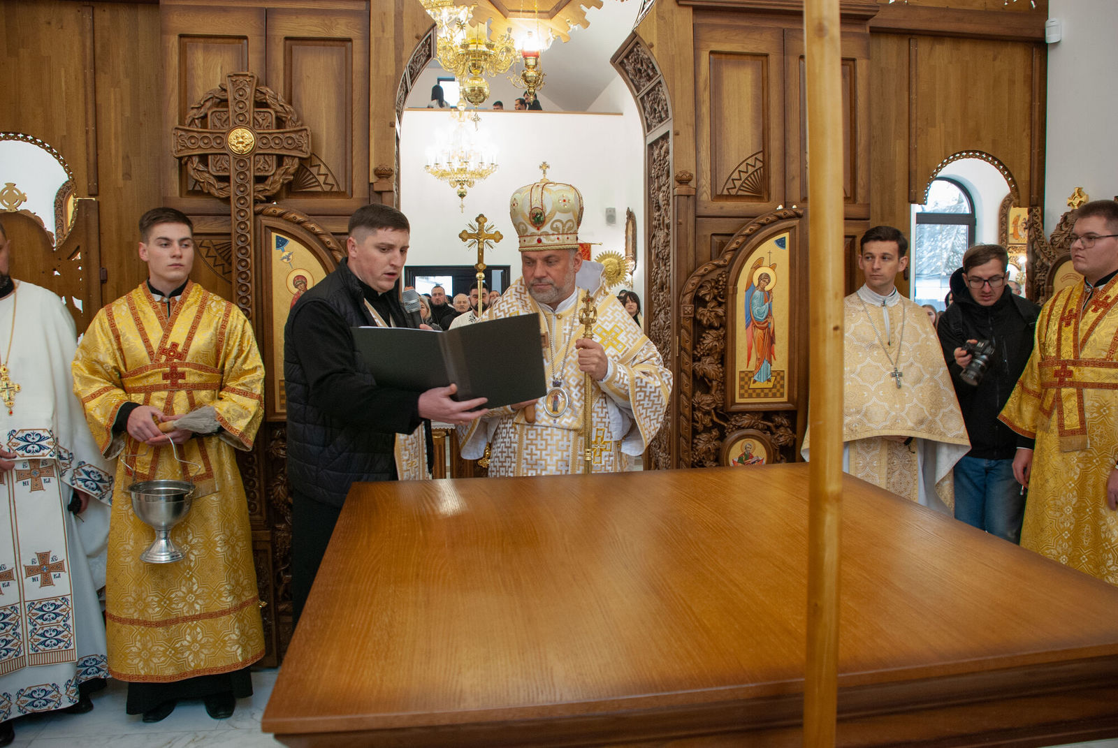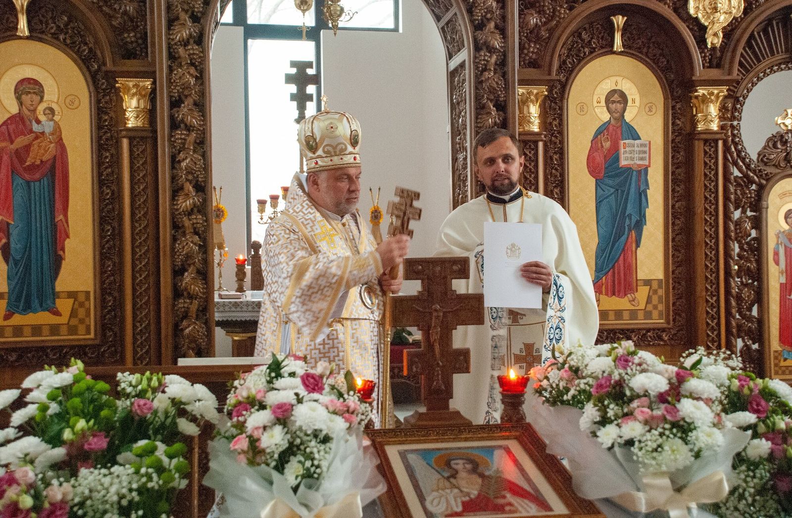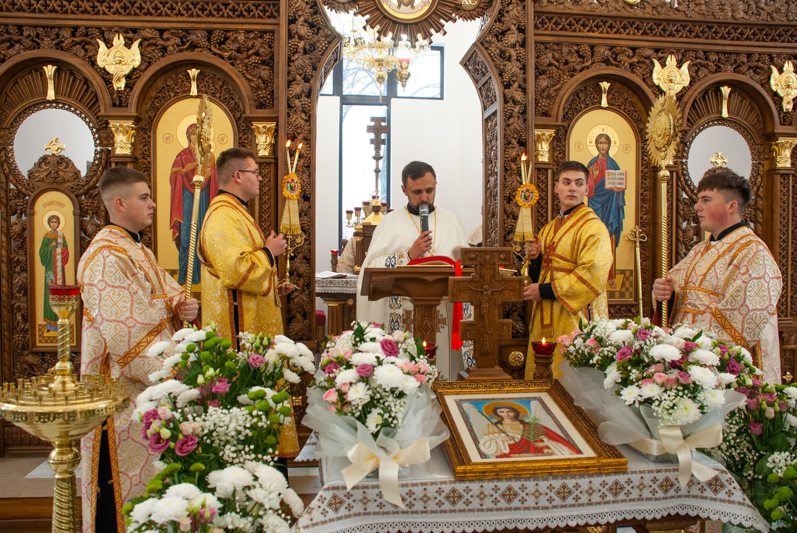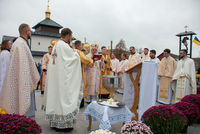 «Сьогодні, — звертається у проповіді єпископ Чернівецький, — у празник Архистратига Михаїла і всіх небесних сил, ми тут, у Сокирянах, освячуємо прекрасний храм. Минулого року тут ми освячували каплицю, а сьогодні — церкву, де буде вирувати парафіяльне життя, місце молитви, гуртування парафіяльної громади на шляху до спасіння у Бозі. Це стало можливим завдяки добрій волі мецената».