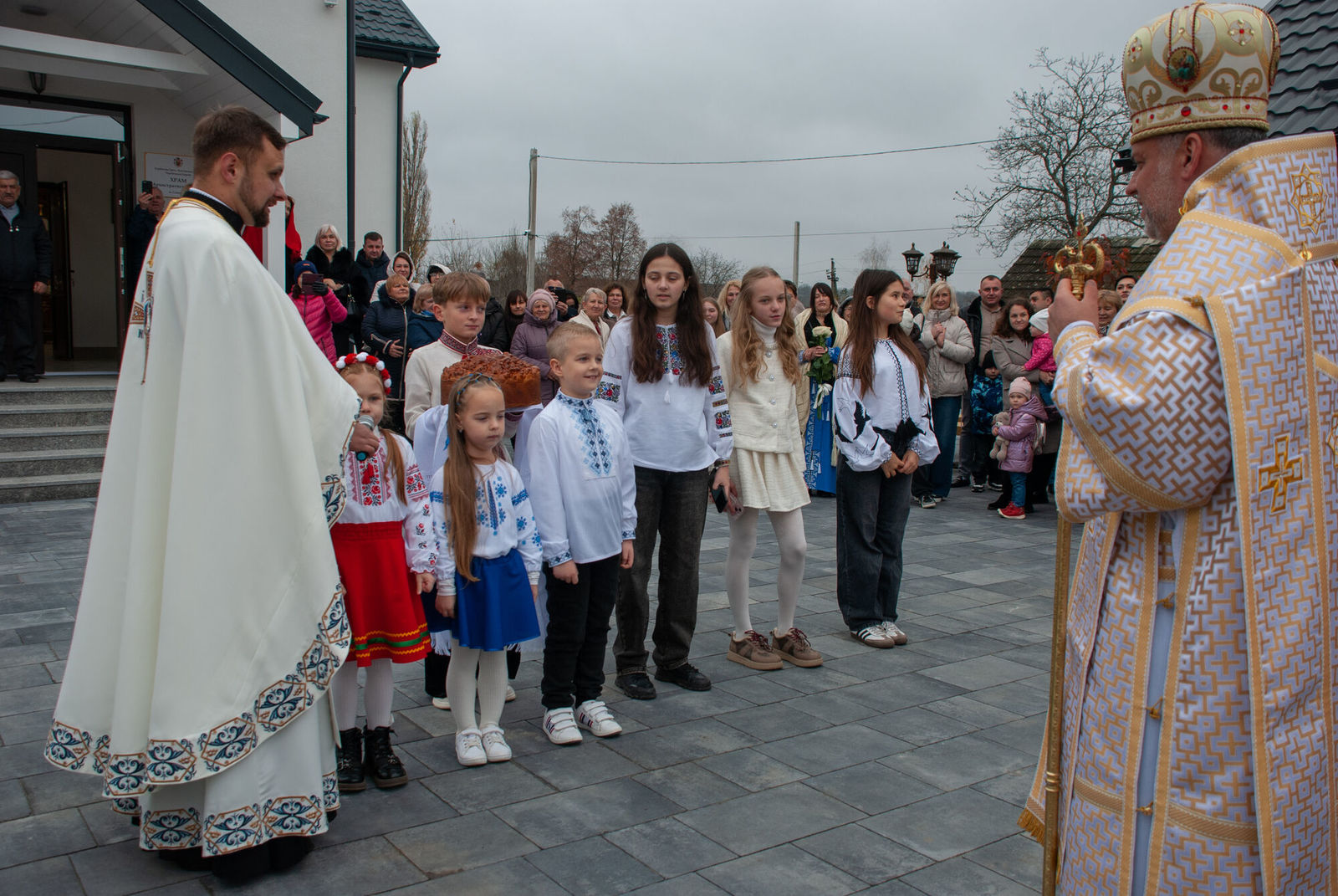 Парафіяни разом з парохом парафії о. Петром Дацком урочисто зустріли єпископа Йосафата, запрошуючи очолити Святу Літургію та освячення храму та престолу. Про це інформує пресслужба Чернівецької єпархії УГКЦ.