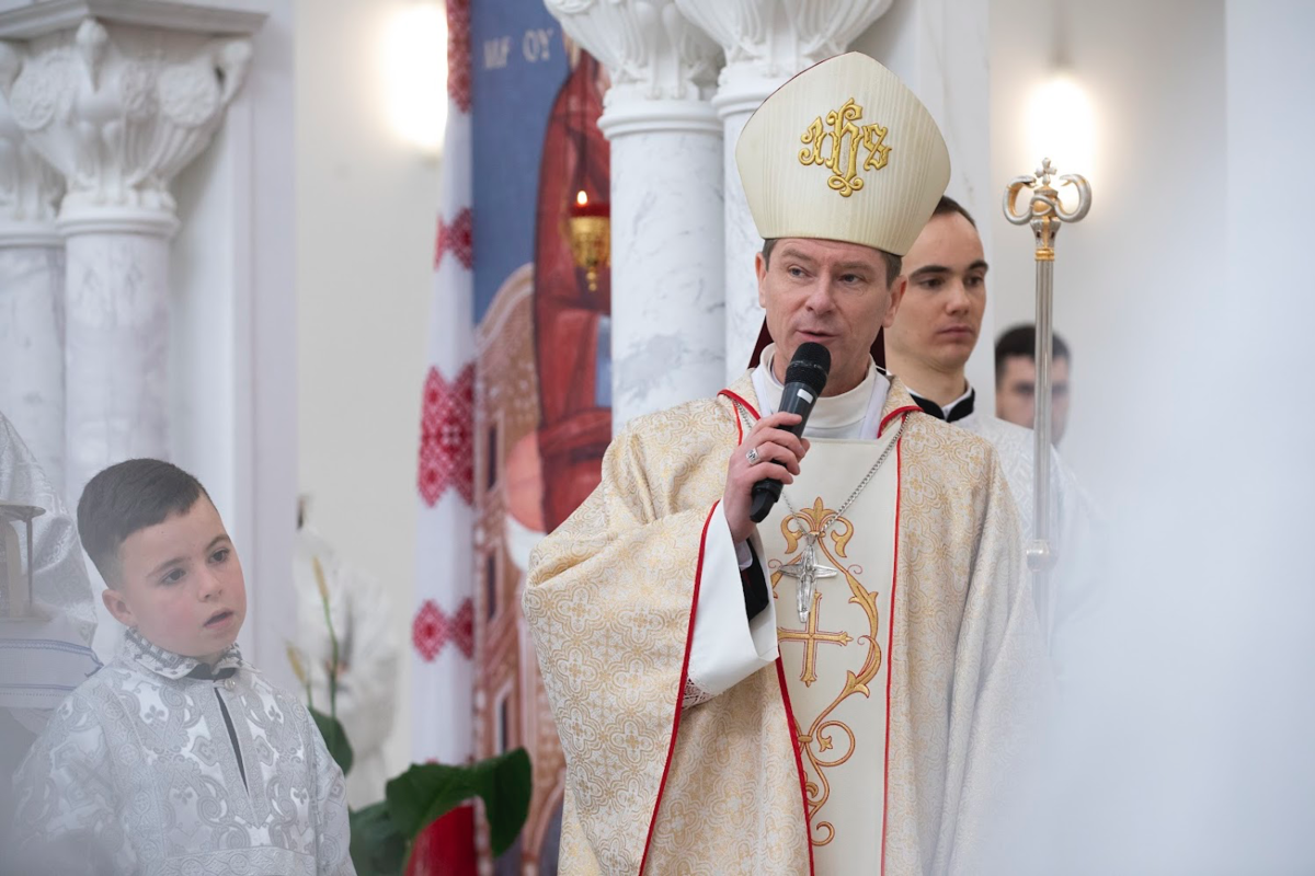 Владика Віталій Кривицький, єпископ Києво-Житомирської дієцезії РКЦ, вітаючи присутніх, наголосив, що після Воскресіння Христос «збирає» своїх учнів і показує, що вони «варті більшого», а сьогодні це свято покликане єднати народ, Церкву, родини та всіх українців, де б вони не були: «Нехай Бог сьогодні зробить те, чого не можуть зробити люди!»