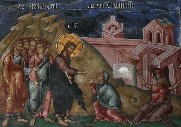 І ось підійшла до Ісуса жінка хананейка, людина цього краю, просити за свою дочку, яку мучив біс. Можливо, ця жінка шукала помочі в різних цілителів, божків, яким поклонялася, але безуспішно.