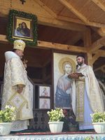 З цієї нагоди Божественну Літургію очолив владика Ярослав Приріз, єпископ Самбірсько-Дрогобицький, у співслужінні о. Павла Коляси, декана Добромильського, о. Михайла Николина, декана Старосамбірського, о. Євгена Карпінця, адміністратора відпустового місця, та священників Самбірсько-Дрогобицької єпархії. Після Літургії владика уділив повний відпуст з нагоди Ювілейного року. Богослужіння молитовним співом супроводжував хор «Canticum» Дрогобицького фахового коледжу імені Василя Барвінського під керівництвом диригента Богдана Бондзяка. Про це зазначає пресслужба Самбірсько-Дрогобицької єпархії УГКЦ.