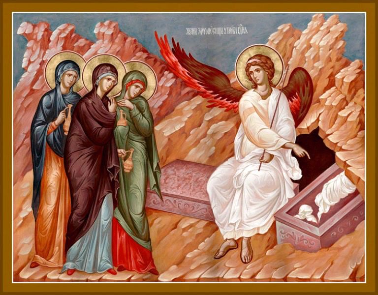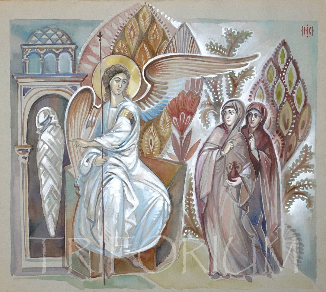 Жінки вранці йдуть до гробу. Саме вони були свідками страстей Христових, Його розп’яття, смерті й уважно дивилися, куди Його поклали. Вони бачили прикочений камінь, печаті римської влади, військову сторожу — були свідками кінця. Але, можливо, внутрішньо бунтували: не може бути, що все завершилося саме так.