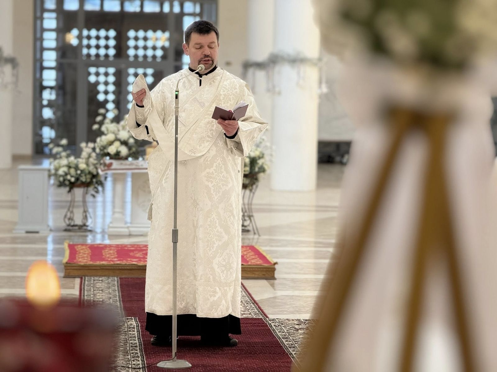 У вівторок Світлого тижня, 14 квітня 2026 року, у Патріаршому соборі Воскресіння Христового в Києві, владика Йосиф Мілян, єпископ-помічник Київської архиєпархії, очолив Архирейську Божественну Літургію та звернувся до вірних із духовним словом, у якому поєднав глибоке богословське бачення Божої присутності з актуальними потребами України.