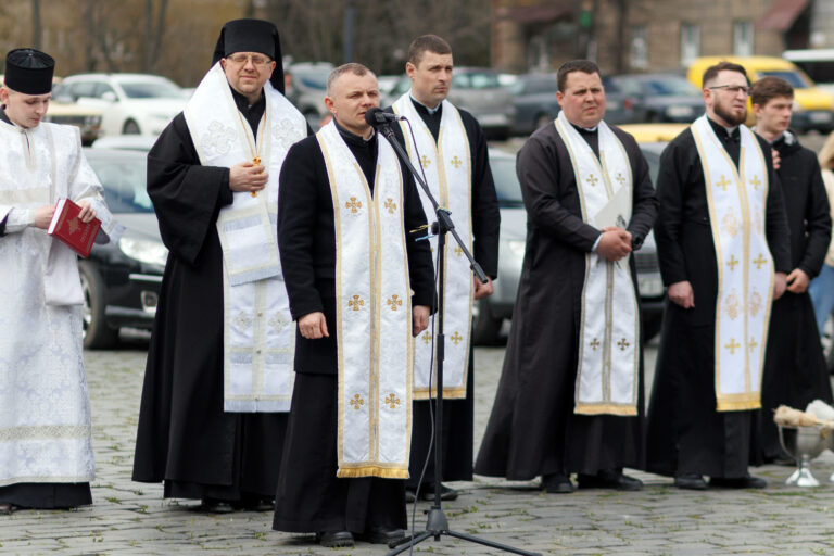 «Ми зібралися тут, бо тут є також наші рідні люди. Довкола них ми зібралися. Ми могли залишитися вдома, закритися зі страху чи смутку. Але що би це принесло?» — розпочав своє звернення до присутніх єпископ.